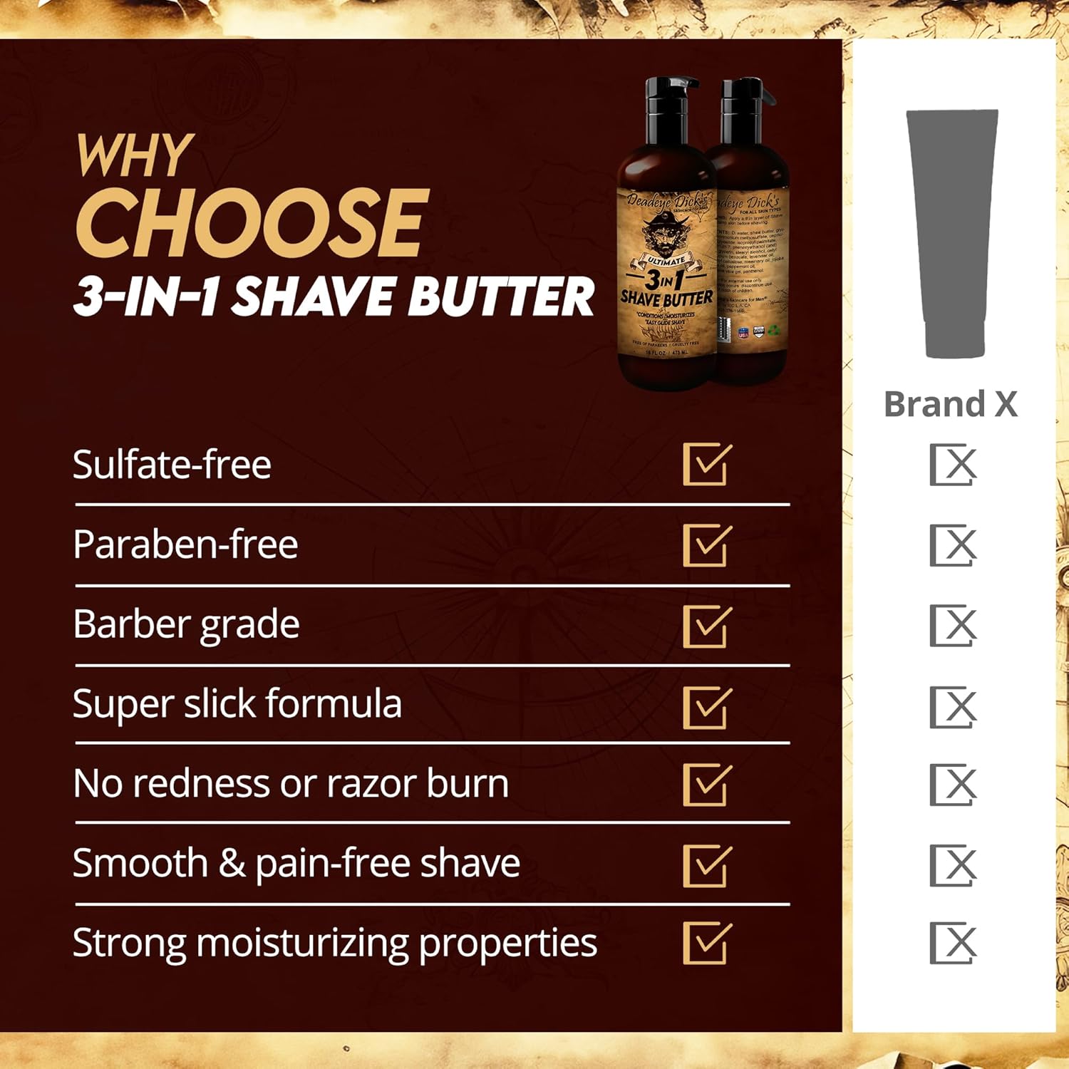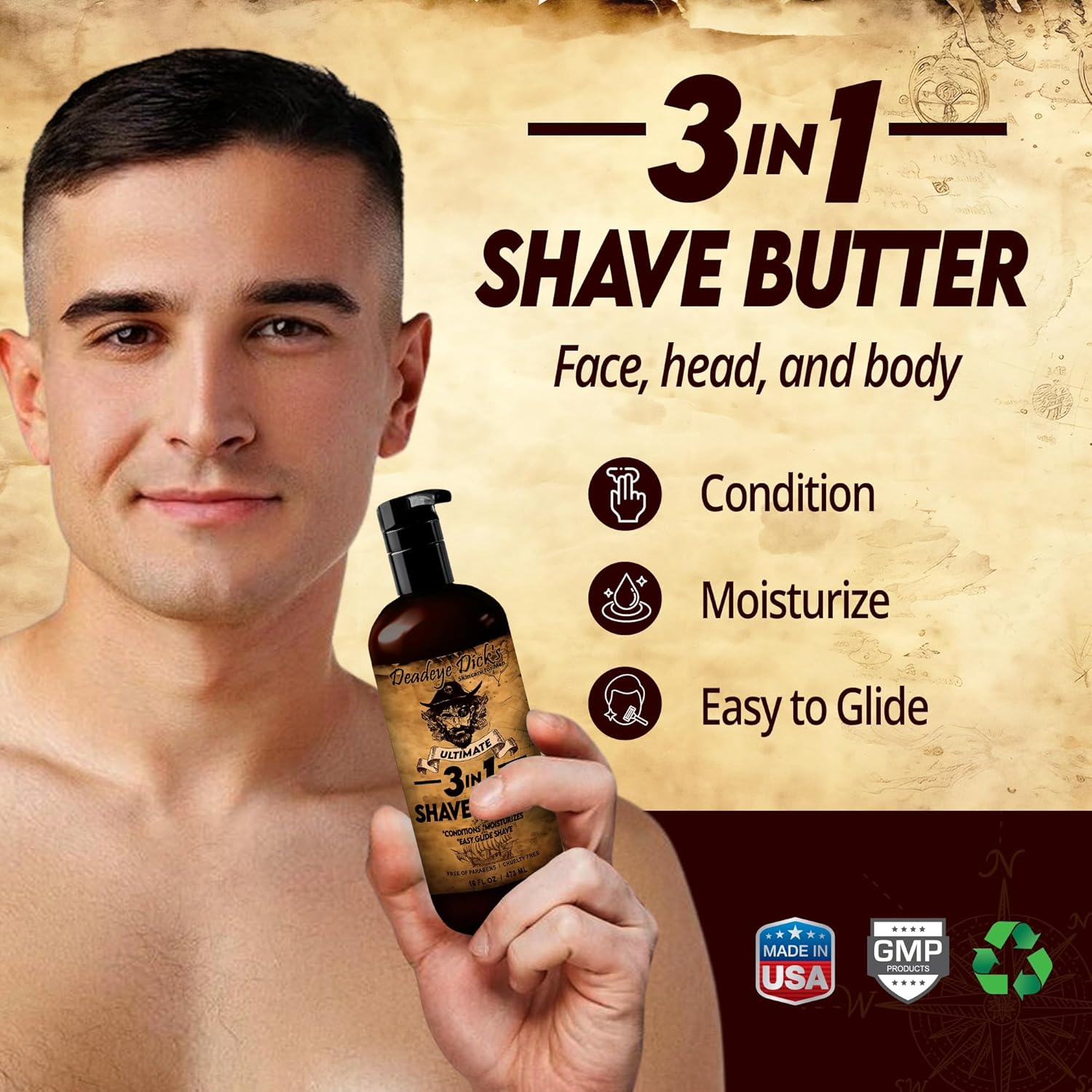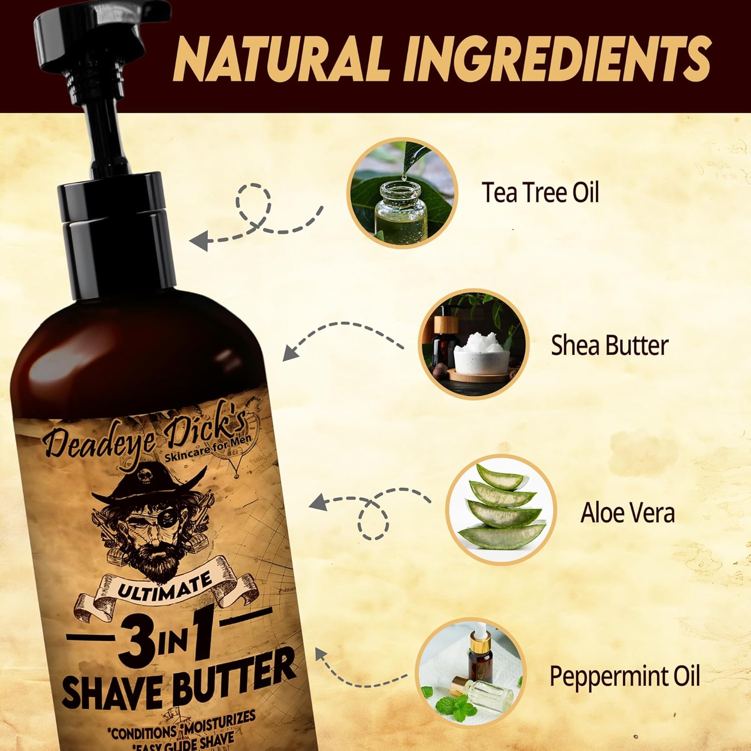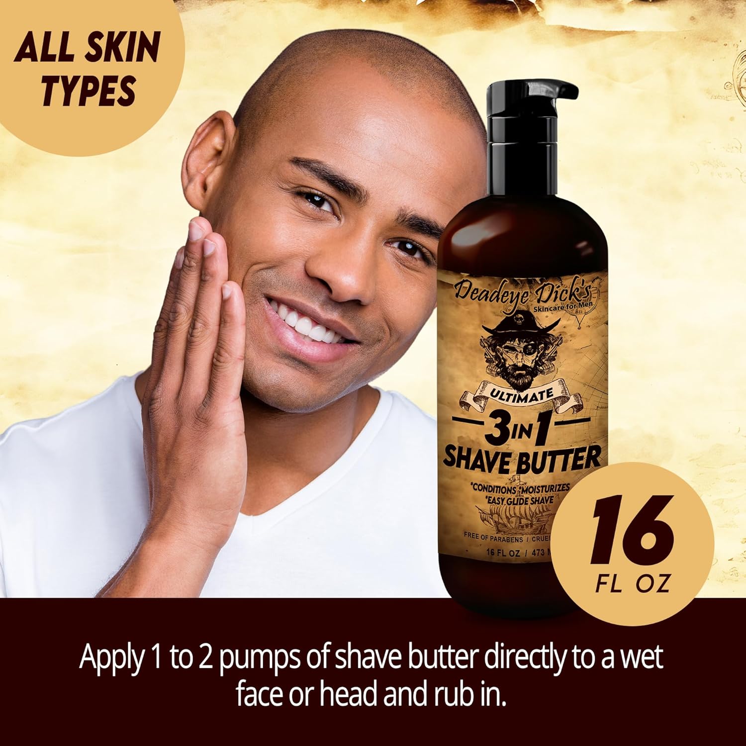 DeadeyeDick’s 3-in-1 Shave Butter | Natural Shaving Butter with Tea Tree Oil & Shea Butter | Shave Butter for Men Face, Head & Body | Paraben & Cruelty-Free | All Skin Types | 16 Fl Oz