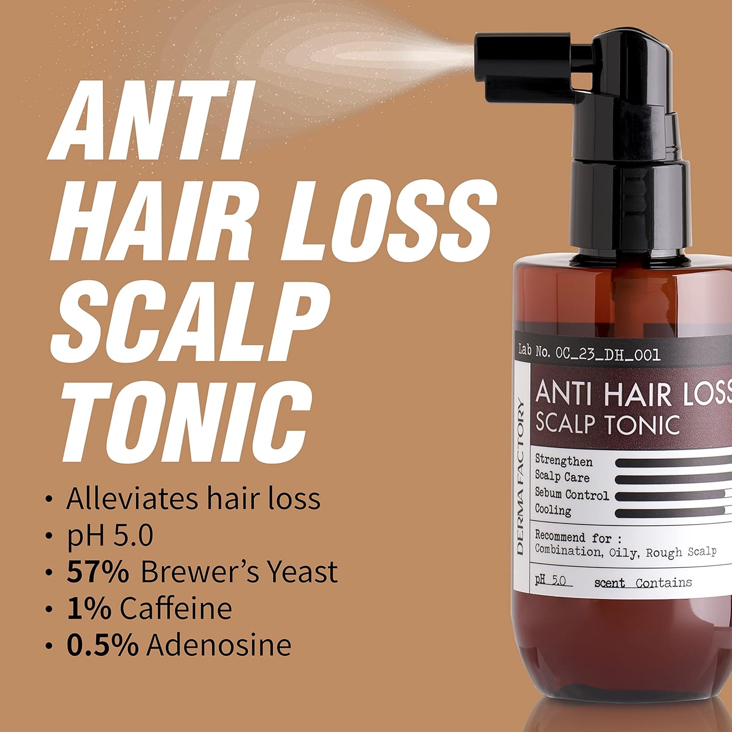 DermaFactory Scalp Treatment Tonic 3.3 Fl Oz Revitalize Thinning Hair Sebum Control Root Enhancer Scalp Instant Cooling & Nourishing Spray w/Brewer’s Yeast 57% Caffeine No Sulfate Silicone Paraben