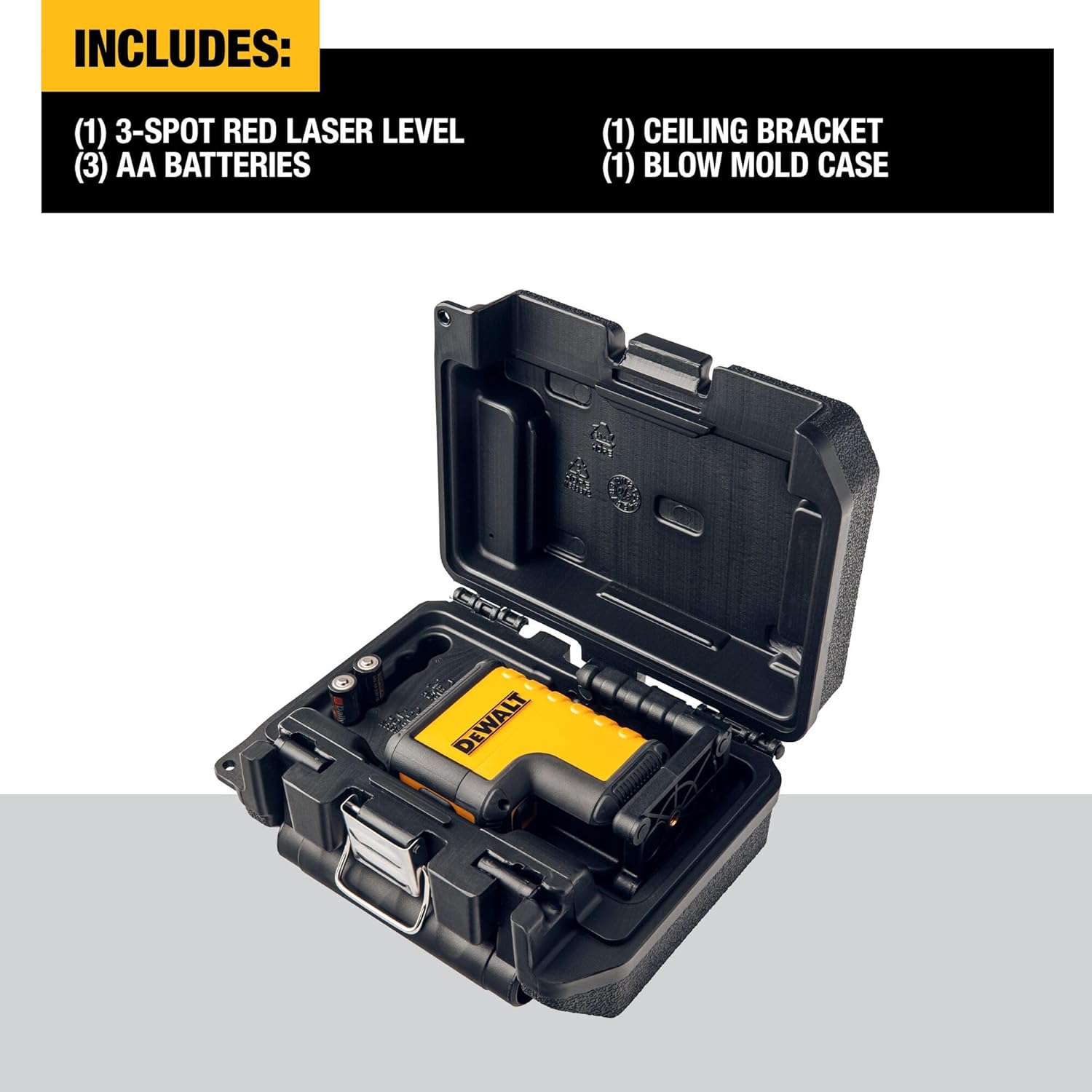 Choose this 3 spot self leveling laser level for your next layout job and you will not be disappointed. DEWALT laser level green line has a locking pendulum and an over molded housing to protect the laser from drops. Mount easily to a variety of surfaces with the integrated magnetic bracket and hang hole.
