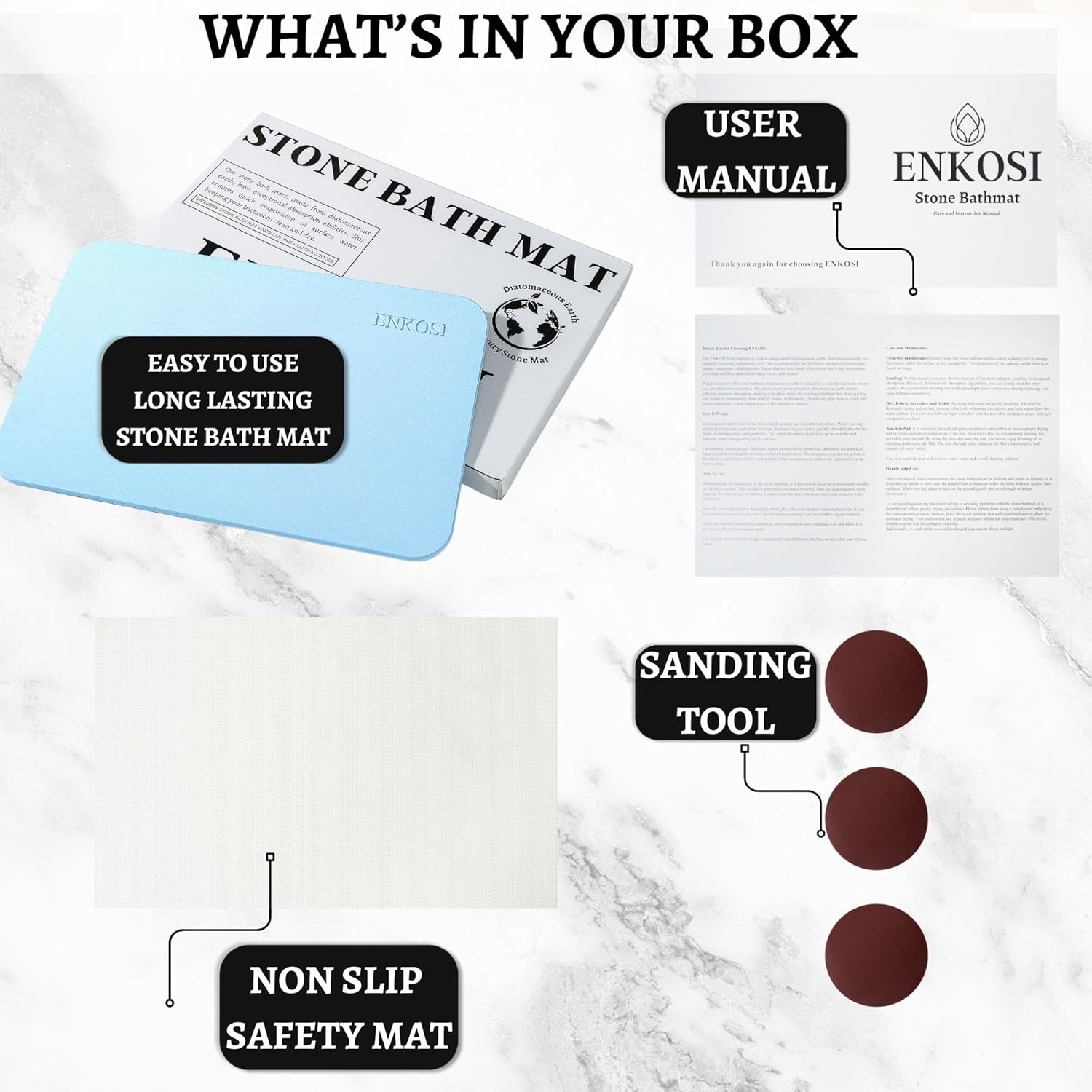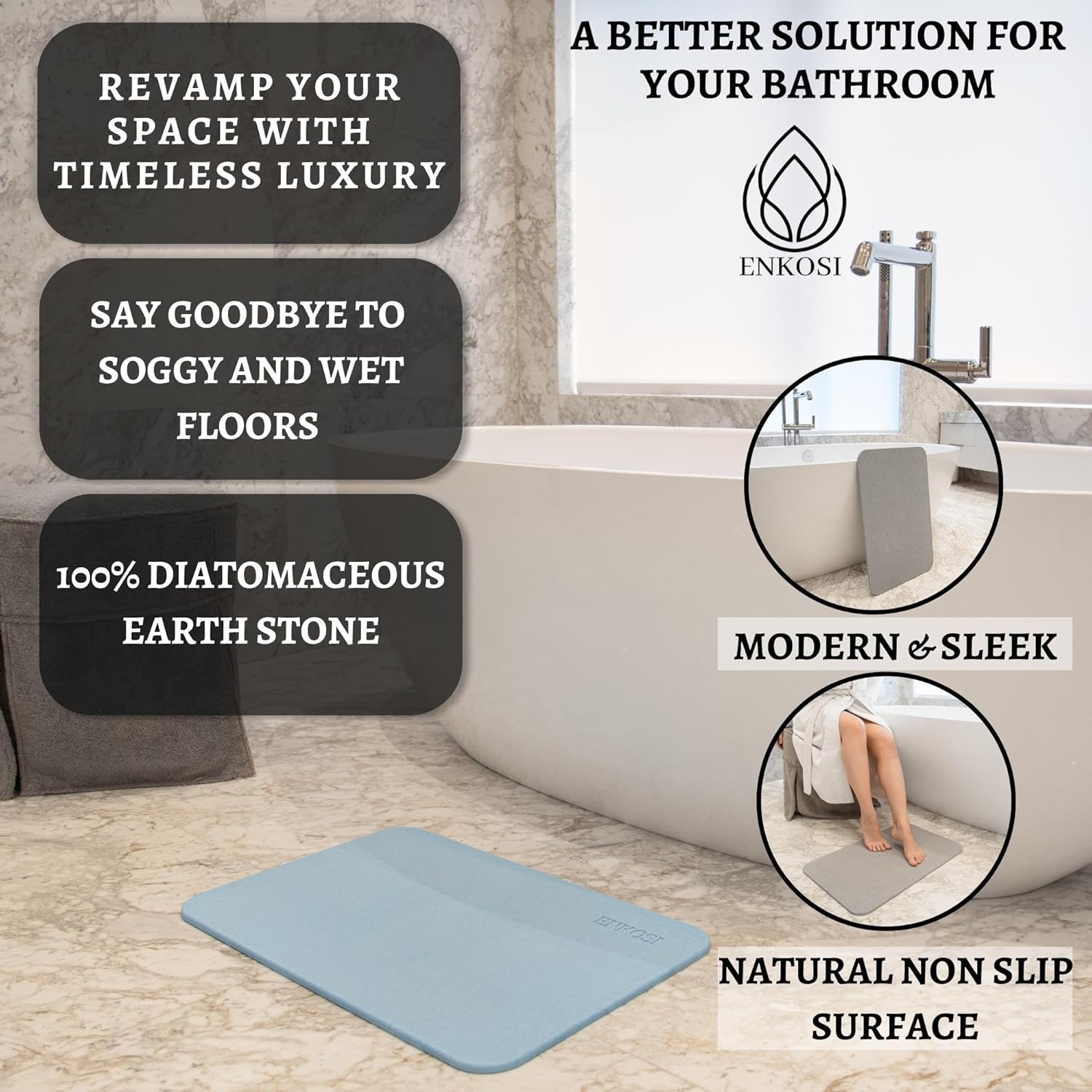 STONE BATH MAT our diatomaceous earth stone bath mat swiftly evaporates water from its surface, keeping your bathroom clean and dry. With its outstanding absorbency, this stone bath mat effectively soaks up water from your feet preventing slips and falls
