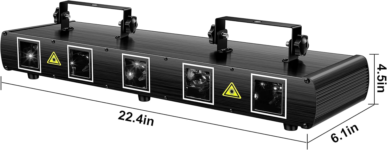 [Functional DJ Lights] New 5-Lens 5-Beam Party Light – With red, yellow, blue, green and cyan LED 5 colors, more than 100 patterns, over 300 Graphics & Effects. illuminate uniform light and effect.