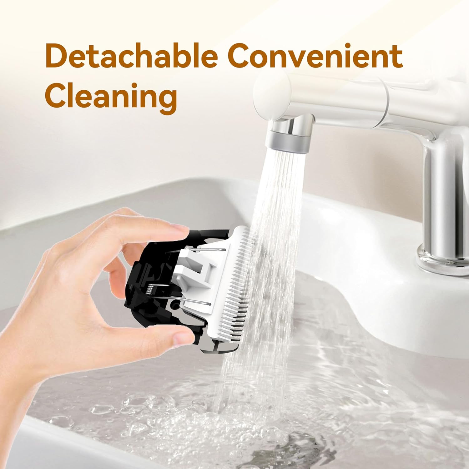 {Detachable and Quiet} Homcolorful dog shaver clipper’s detachable blade design allows for easy cleaning, and it operates at a noise level of less than 55 decibels even at maximum speed, ensuring a quiet grooming experience for your pet.