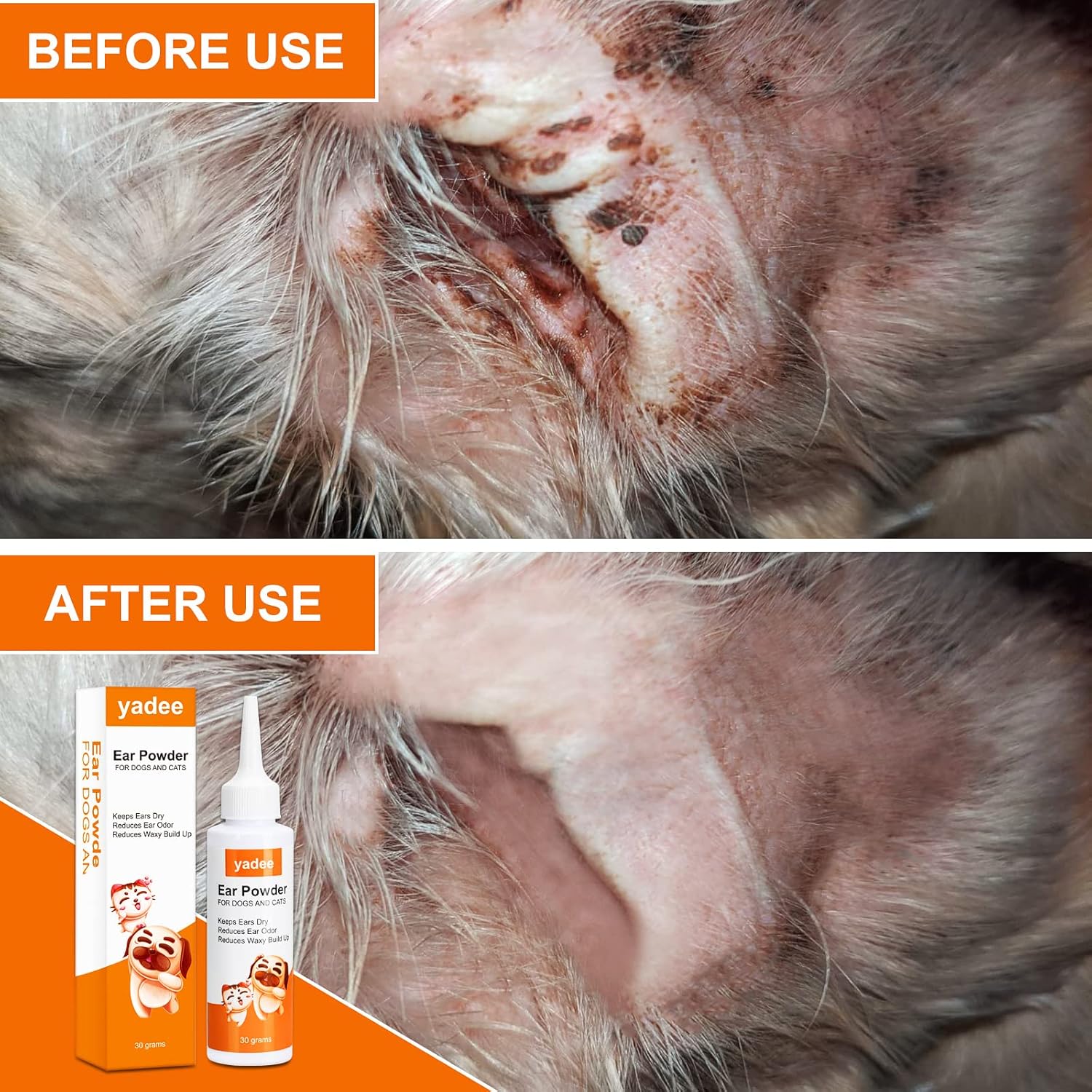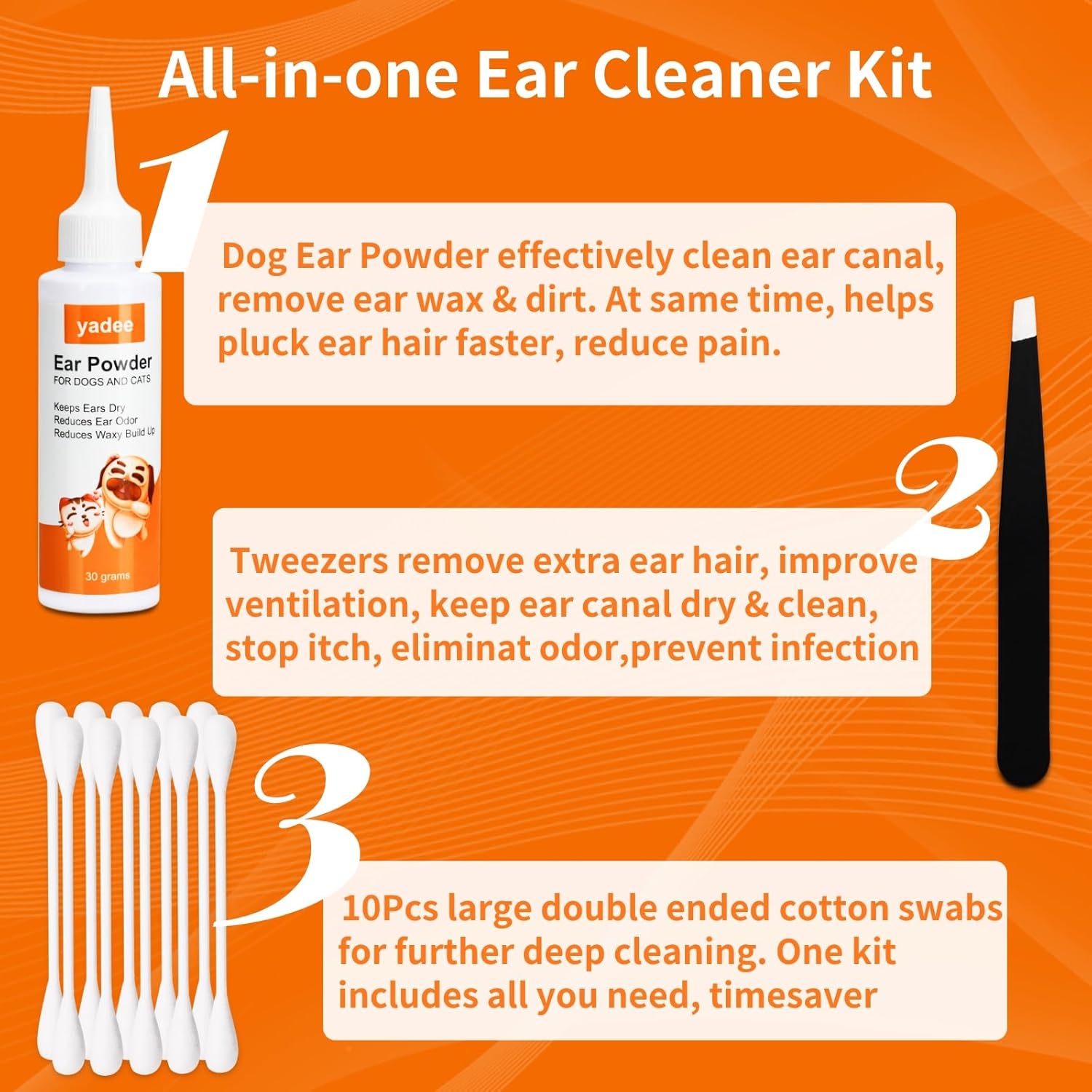 [ Easy To Use ] — Spray the dog ear powder into the ear canal, fix and massage ear for a few minutes, then gently pull out the hair with tweezers. Finally, clean ear with cotton swab or our Yadee pet ear finger wipes.