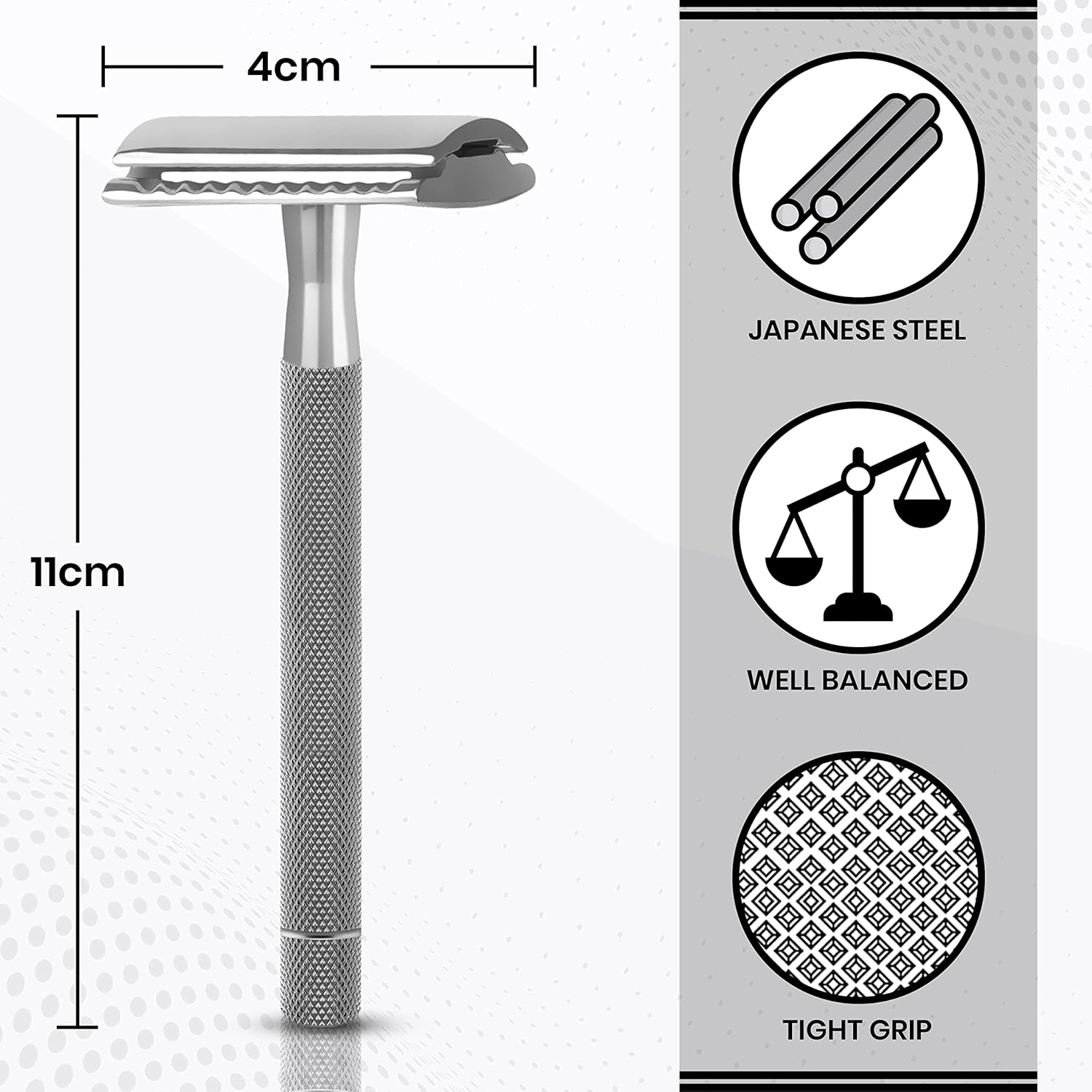 Double Edge Safety Razor for Men & Women with 10 Double Edge Safety Razor Blades Long Handle Metal Razor Double Edge Razor Safety Razor Kit Single Blade Razors for Women & Men Eco-Friendly