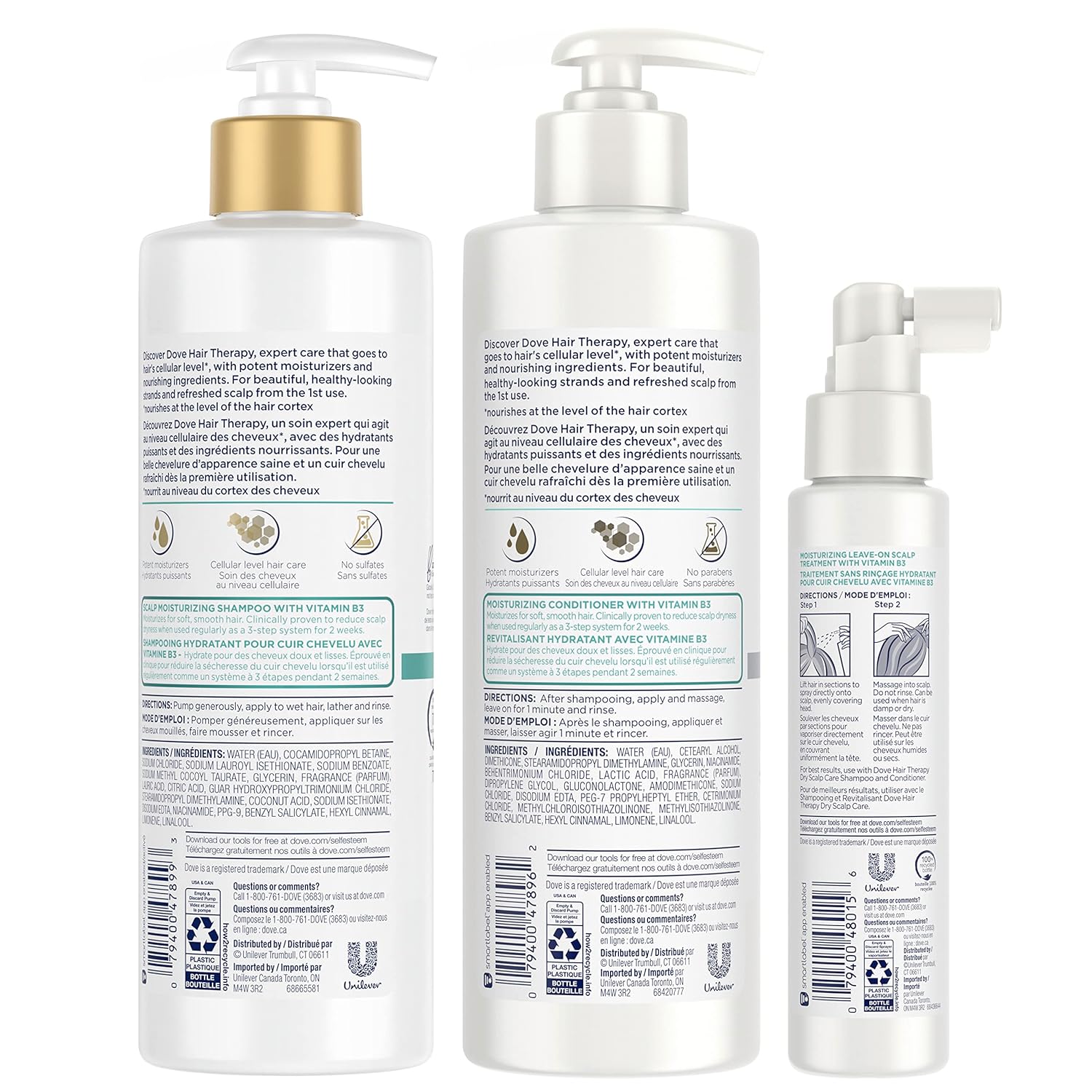 Dove Hair Therapy Regimen Hair Set Shampoo, Conditioner and Leave-On Scalp Treatment for Dry Scalp with Vitamin B3