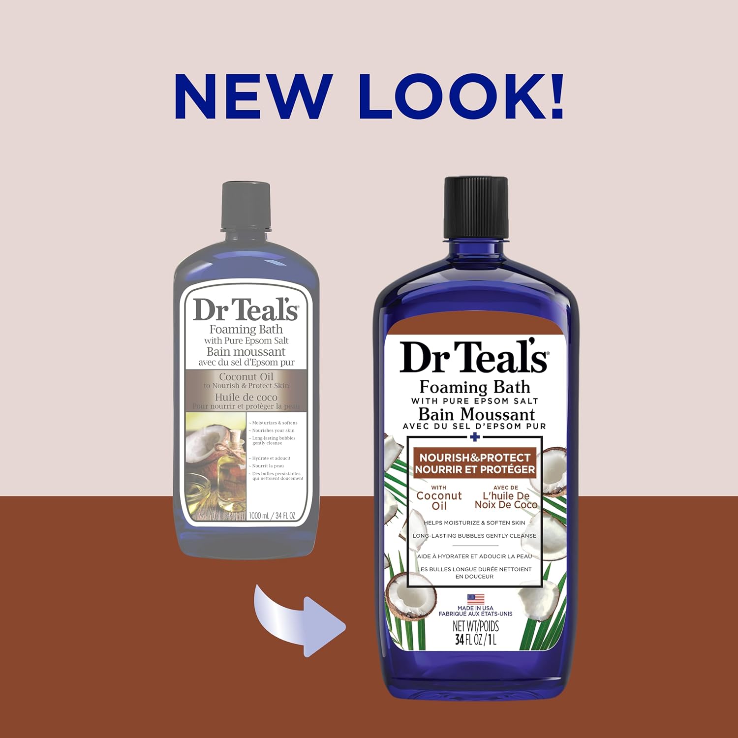 Dr. Teal’s Coconut Oil Foaming Bath with Pure Epsom Salt (1 Bottle, 34 oz) – Essential Oils Nourish & Protect your Skin – Relieve Stress & Revitalize Tired, Achy Muscles at Home – Long Lasting Bubbles