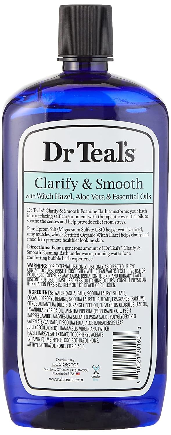 Dr Teal’s Foaming Bath with Pure Epsom Salt, Clarify & Smooth with Witch Hazel & Aloe Vera, 34 fl oz (Packaging May Vary)