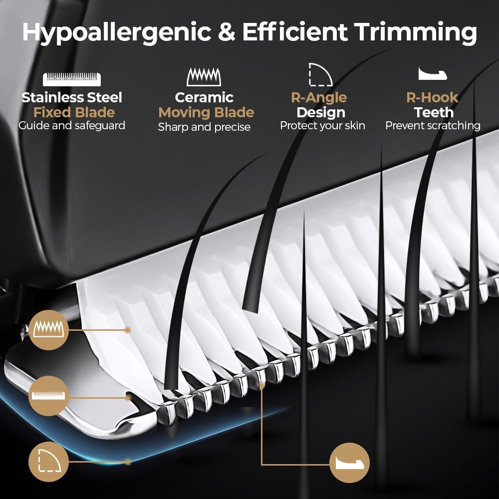 Effective & Gentle Shave: Ergonomic designed body shaver for men, stylish and easy-to-handle. It boasts 30 teeth density and R-angle barbed teeth with hypoallergenic ceramic blades, safe and skin-friendly, say goodbye to nicks, snags, or skin scratches, experience a fast, smooth and precise trimming for efficient grooming, saving you time and effort.