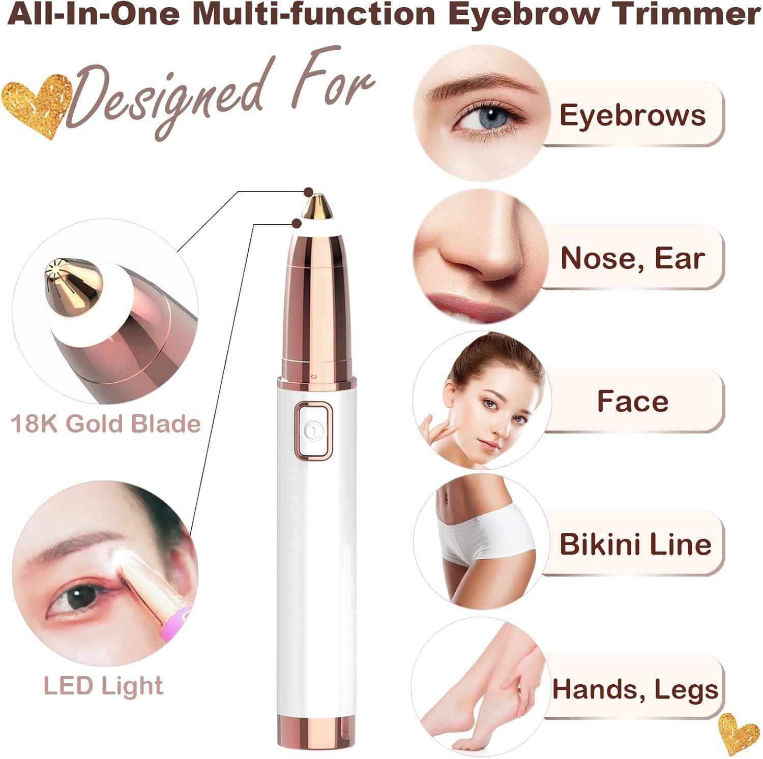 [Multi-function Hair Remover] This eyebrow trimmer is designer for face, chin, upper-lips, body, peach fuzz, eyebrows, cheeks, ears and even detailing beards. You can trim eyebrows to the desired length and create a clean, confident look