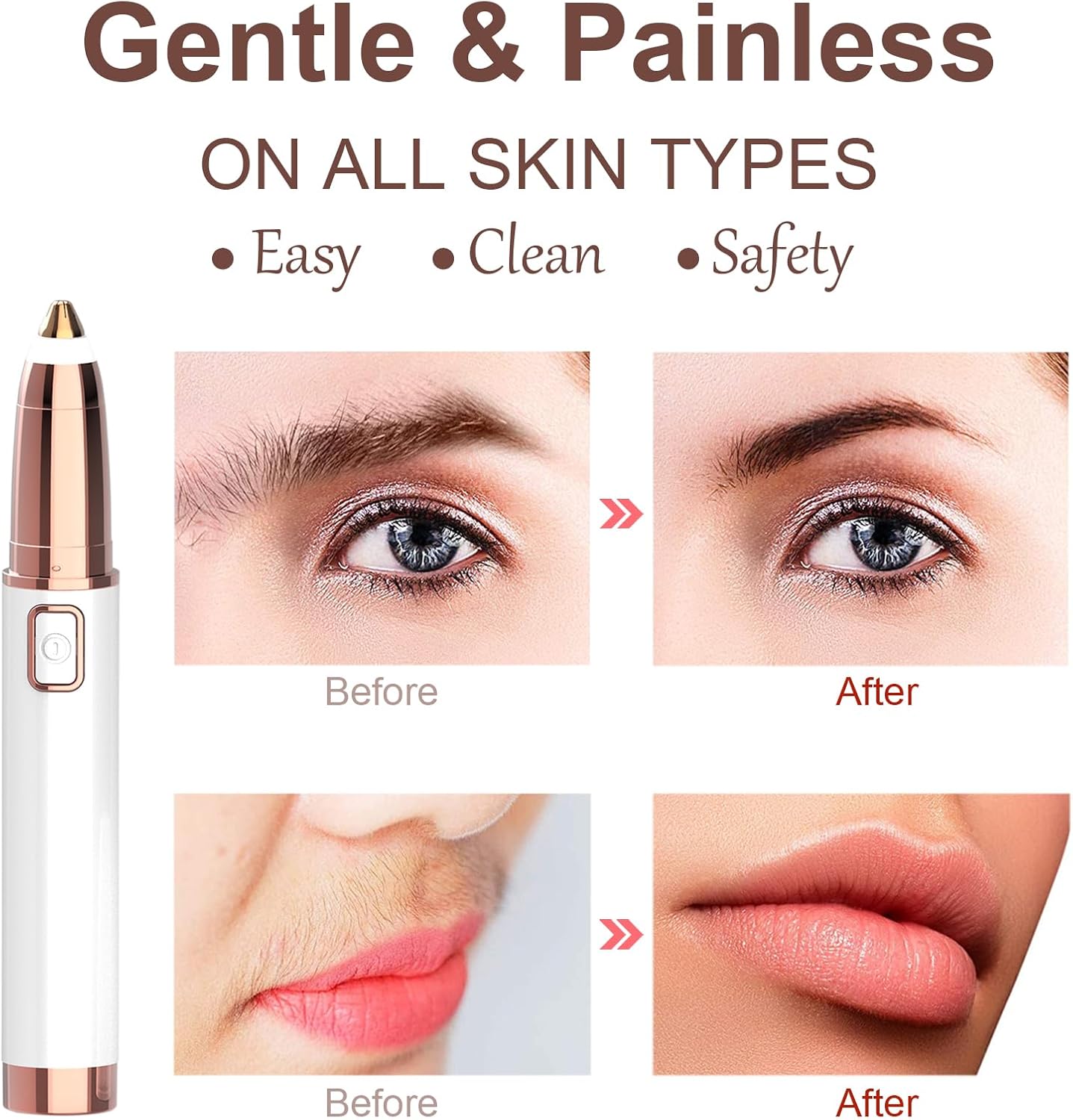 Electric Eyebrow Trimmer for Women, Facial Hair Painless Razor Removal, Mini Epilator Remover for Face, Bikini, Chin, Peach Puzz, Body, Legs, Powered by Battery (not included) (Style-B White)