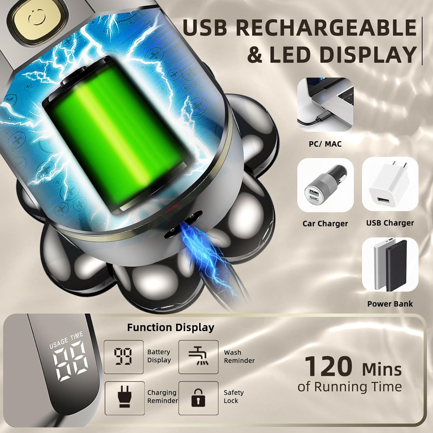 THOUGHTFUL GIFTING MADE EASY: Surprise your loved ones with the perfect gift that combines style and functionality. Our 5-in-1 electric head shaver’s classy metallic design, intelligent digital display, and one-key power-on feature make it a thoughtful and comprehensive grooming solution that will delight any recipient.
