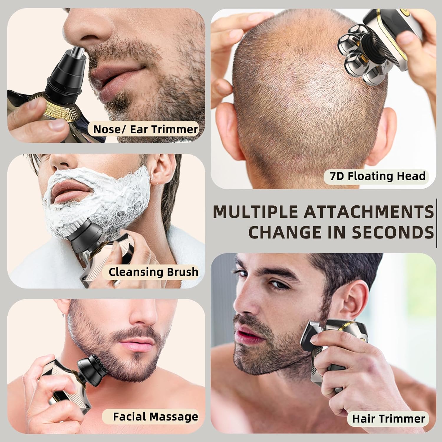 EFFORTLESSLY SMOOTH SHAVES: Glide through your grooming routine effortlessly with our upgraded 7D electric razor. Its precise rotary blade heads seamlessly adapt to the curves of your face and head, reducing shaving time while delivering precise, clean results for a consistently smooth shave.