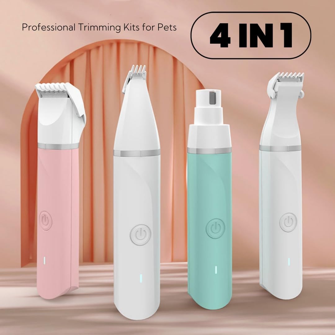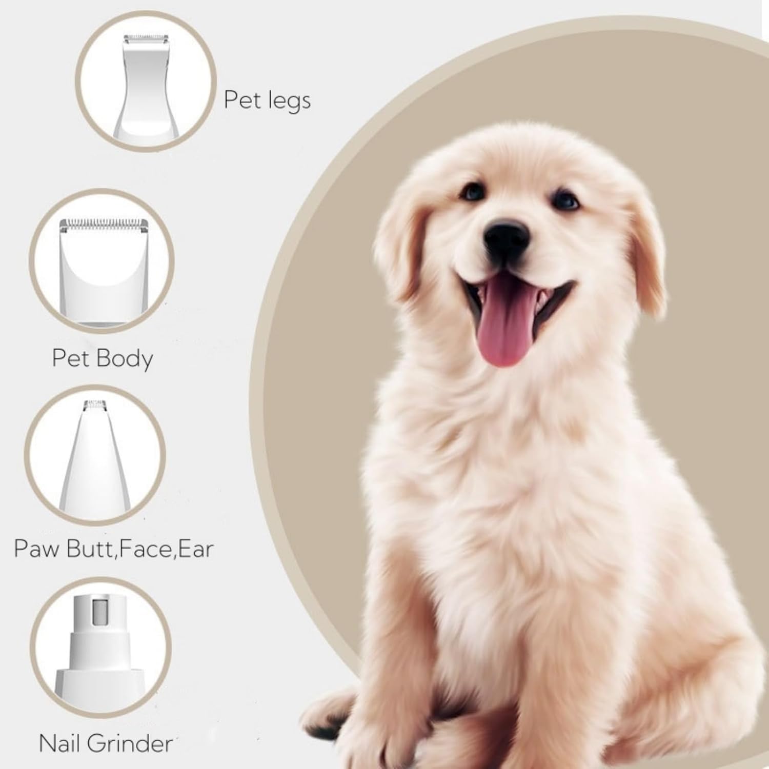 ● 4 In 1 Pet Hair Clipper ▶Professional hair trimmer with 4 different detachable blades,which can groom your pet fron paw,ears,tail to whole body,save your money enjoy the salon time at home.