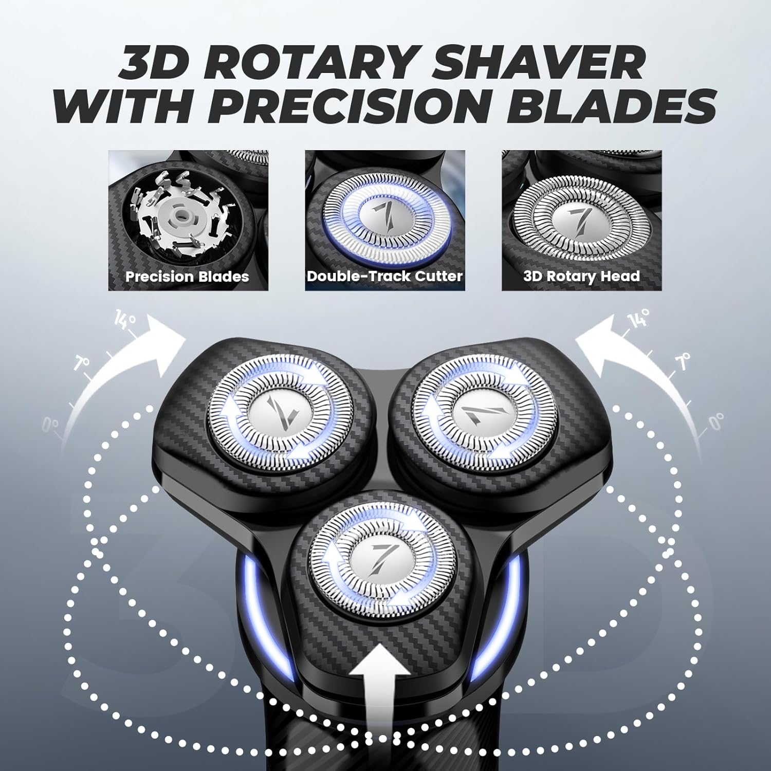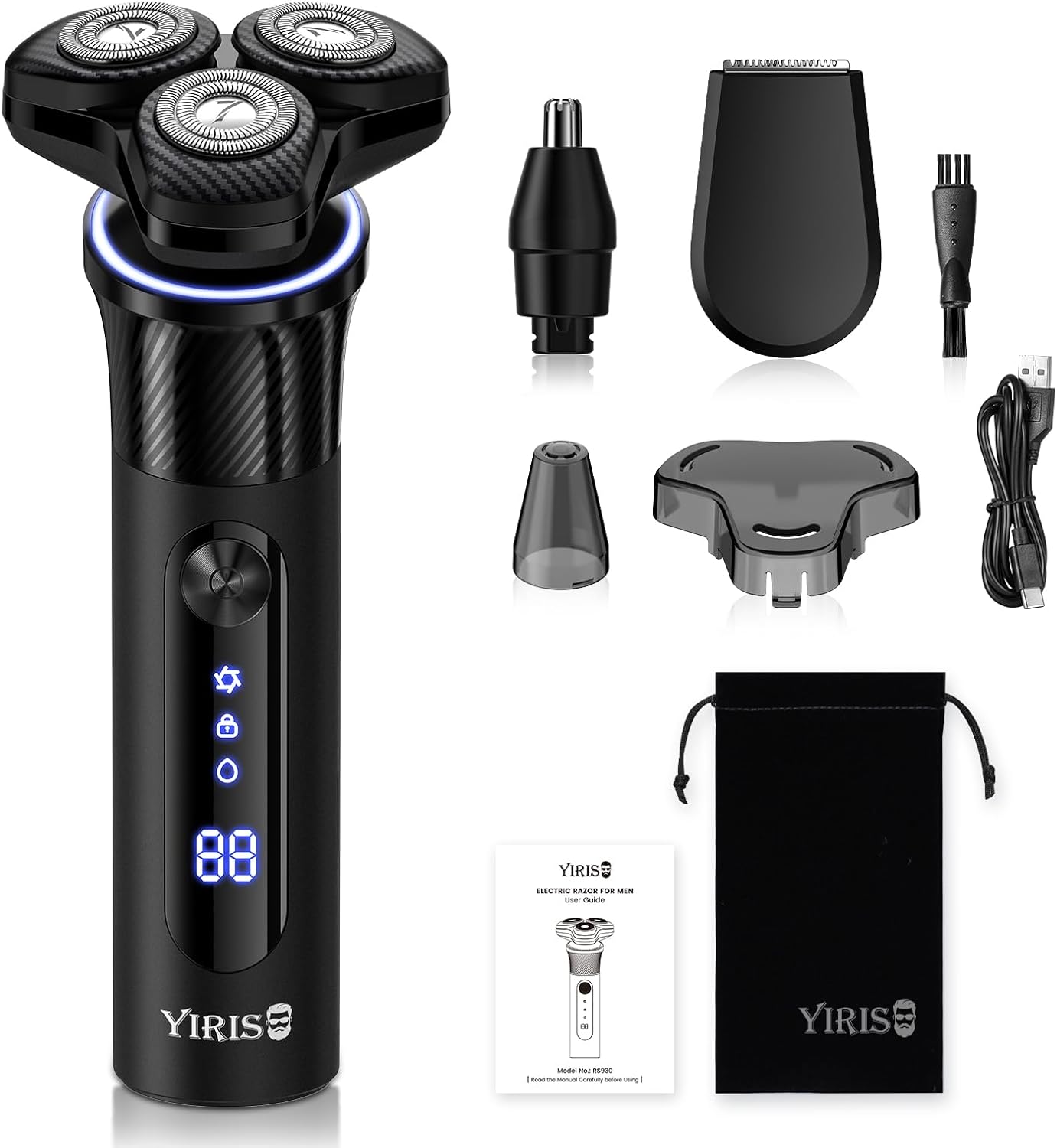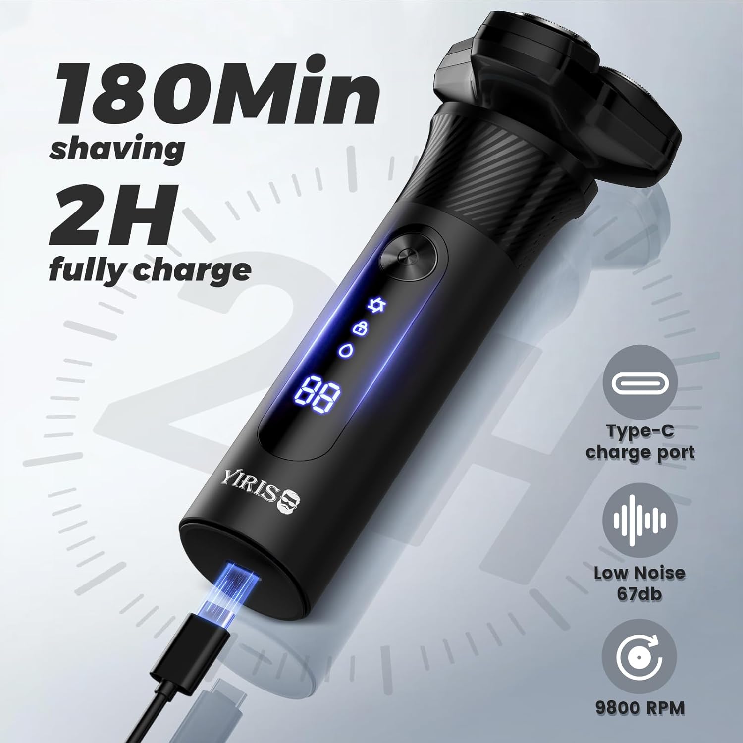 【360° Flexible Floating Head & Dry/Wet Shaving】: YIRISO 3D Floating Shaver Head for Shaving with 3 double-ring floating electric shaver heads made of aerospace-grade stainless steel material, its 9800RPM high-speed motor, dual-rail ultra-thin blade mesh , you can not only achieve a quick dry shave on the sofa, but also enjoy a refreshing and comfortable foam gel shave in the shower, automatically adjusting the fit according to the contours of your face, neck, and jaw.