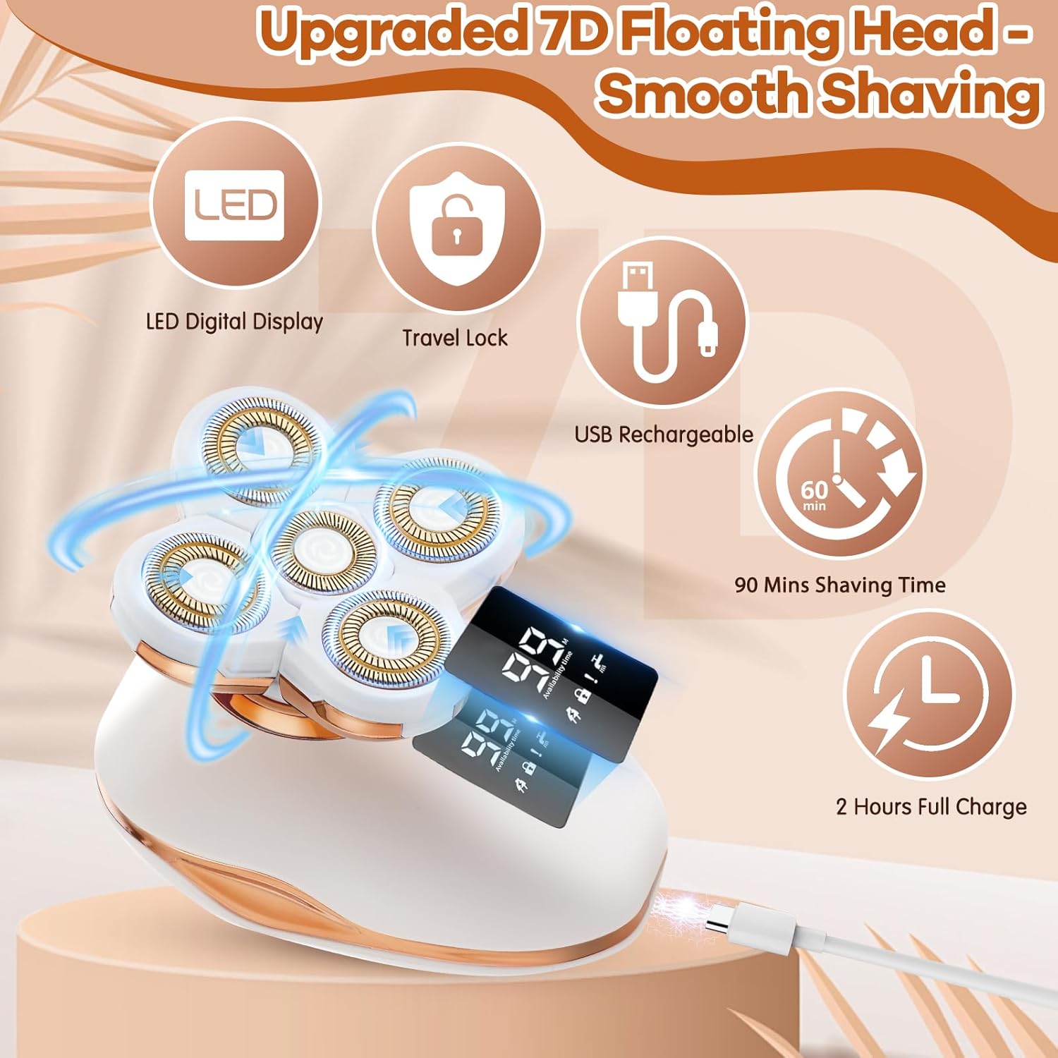 【5D Floating Blades】5D wrap-around floating blades allow our women’s razor to automatically adapt to the contours of your hands, legs, head, face, neck and even chin. Providing you with a comfortable and efficient shaving experience. Rounded head design is acne-friendly and perfectly protects skin from nicks and cuts. 360°Gentle, painless and clean hair removal.