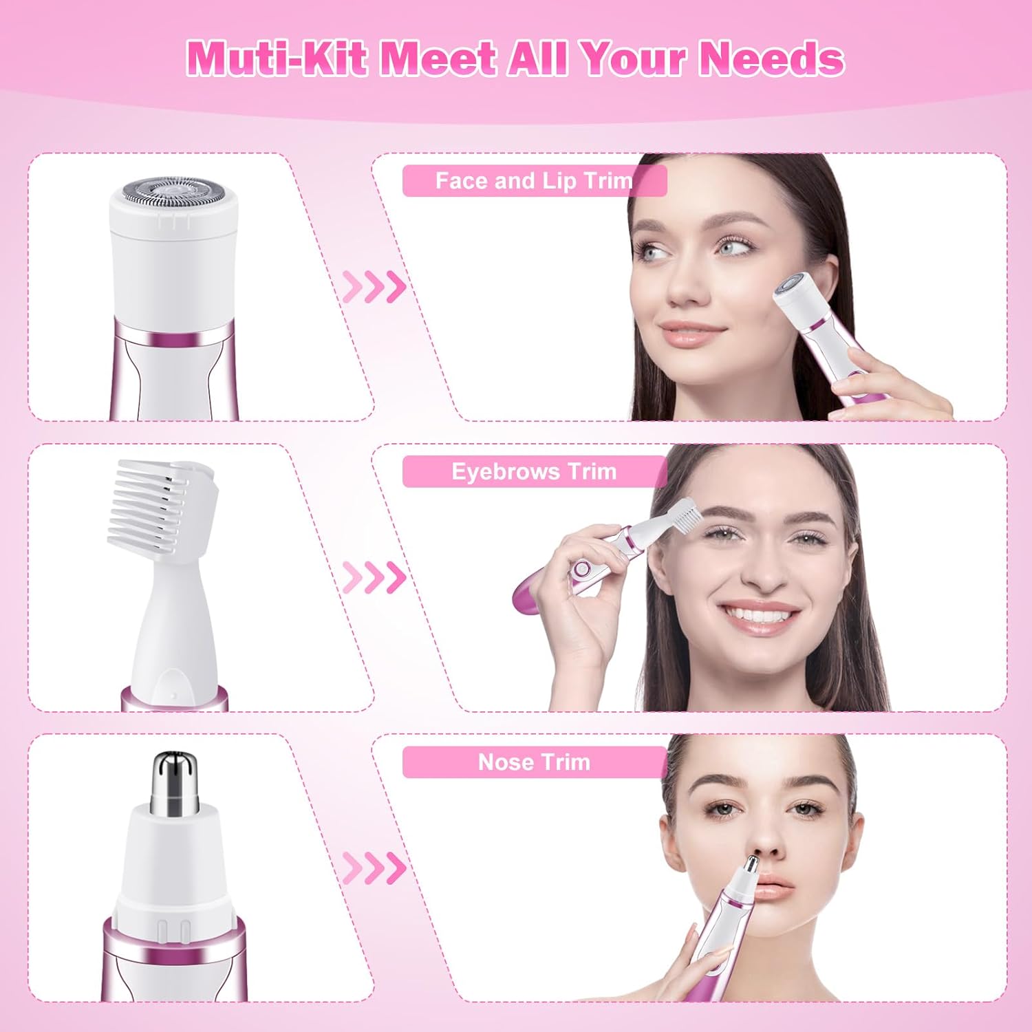 Electric Razors – Shaver – Trimmer for Women: 4 in 1 Epilator Facial Hair Removal for Women Face Body Nose Hair Eyebrow Leg Bikini Pubic Underarms