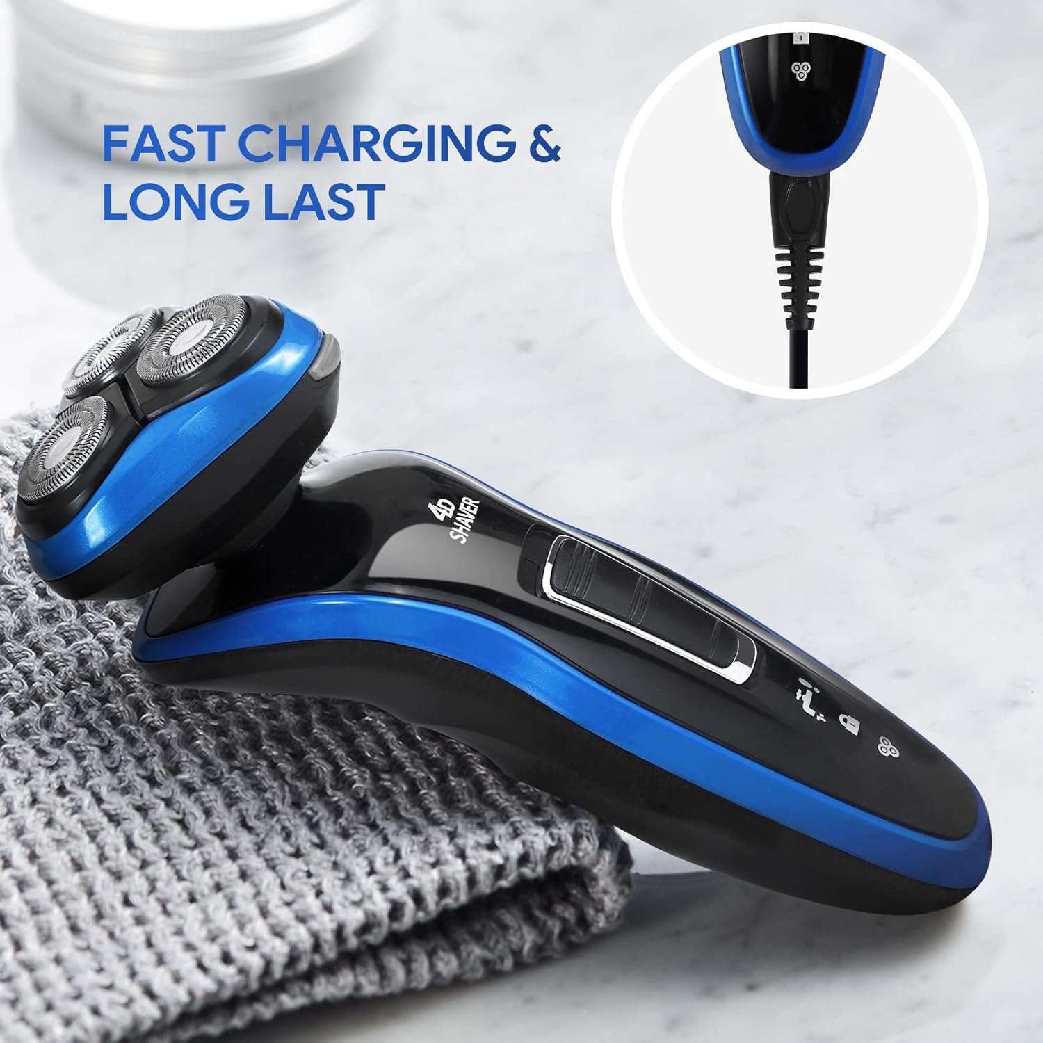 Electric Shaver for Men, Rechargeable Electric Razors 4 in 1 Trimmer Kit for Wet & Dry Shaving, 1 Hour Fast Charging (Blue)