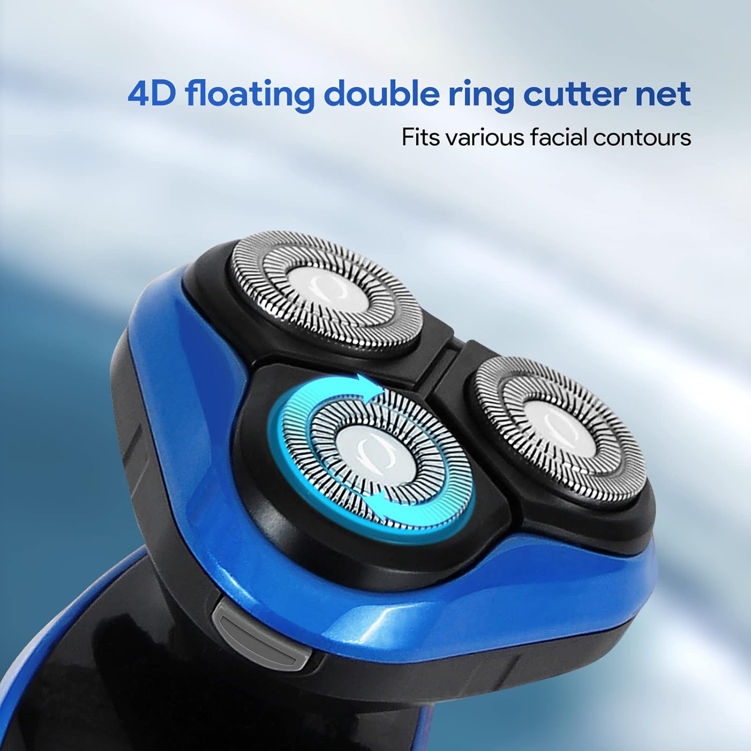 [Smooth & Quick Shave] The 3D floating heads with precision blades of upgraded double-blade technique automatically adapts to the contours of the face, neck and even the jaw. Rounded edges move smoothly over skin for a protective shave.