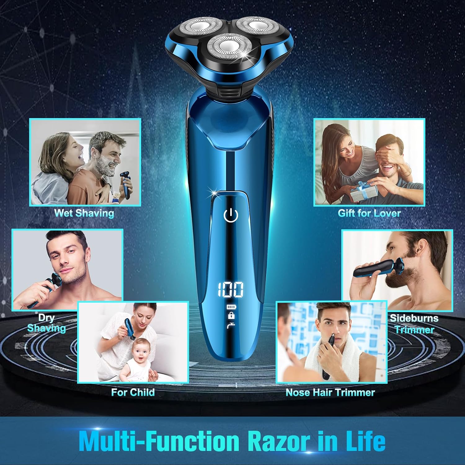Electric Shavers for Men,2024 Electric Razor for Men Cordless Rechargeable 3D Rotary Men Shaver,Wet/Dry Mens Shaver,Waterproof Mens Razor for Shaving Gifts for Husband, Dad,Boyfriend(Bright Blue)