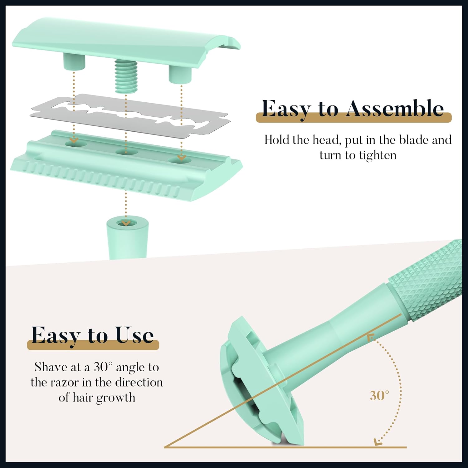 ☘️Cost Effective: Get rid of the recurring expense of disposable safety razor for women, all you need to do is replace the blades with recyclable ones. Our safety razors offer a cost-effective, sustainable solution without sacrificing performance.