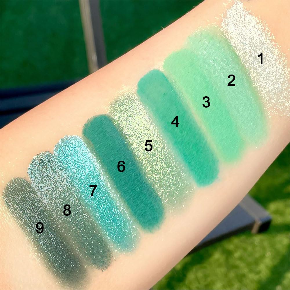 evpct 9 Colors Cyan Light Bule Emerald Mint Dark Green Glitter Shimmer Eye Shadow Makeup Palette Highly Pigmented Waterproof Matte Glitter Shimmer Pearl Daily Party Sparkling Eyeshadow Palett for Girl
