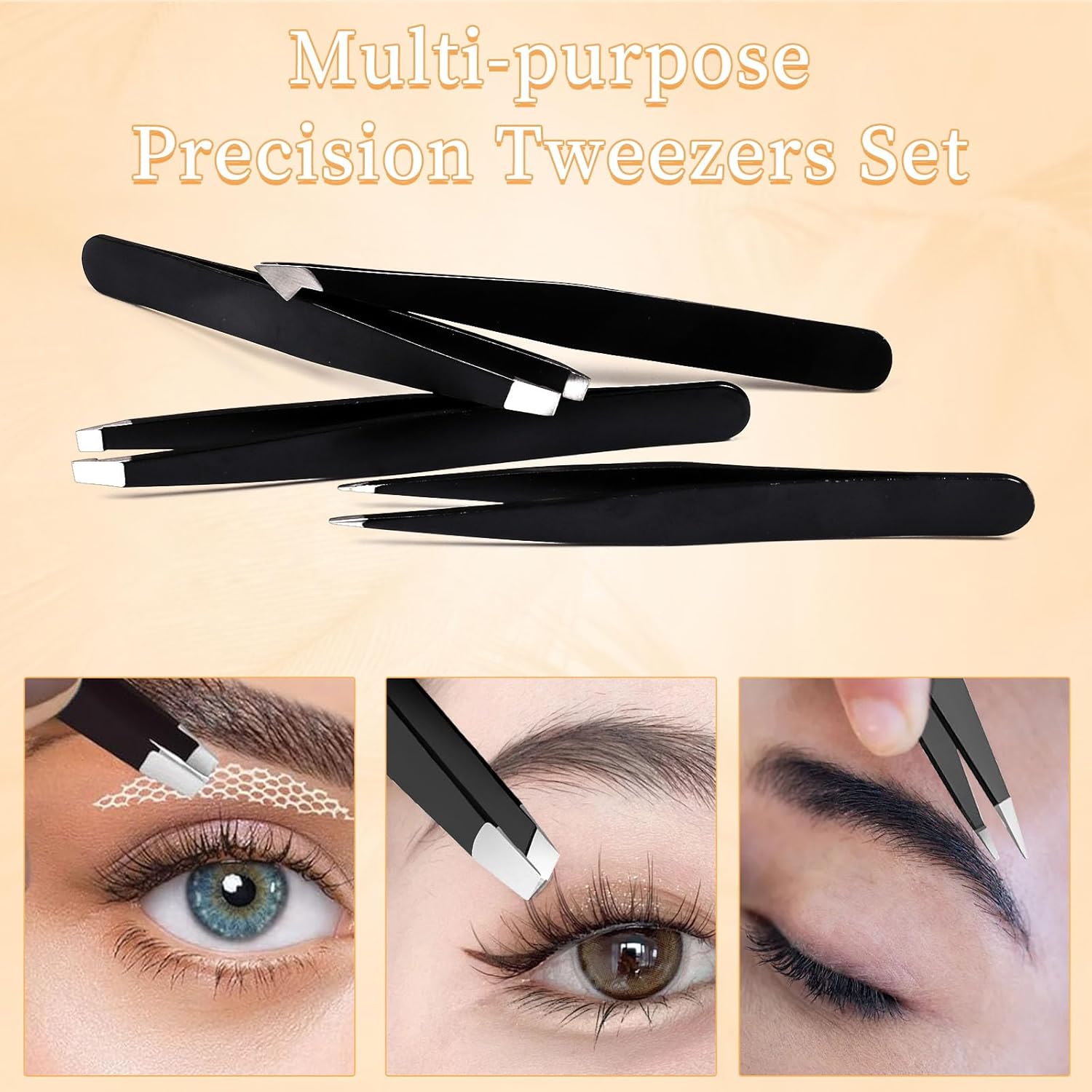 4-PIECE PRECISION TWEEZERS SET-Eyebrow Tweezers4-PIECE PRECISION TWEEZERS SET-Eyebrow Tweezers