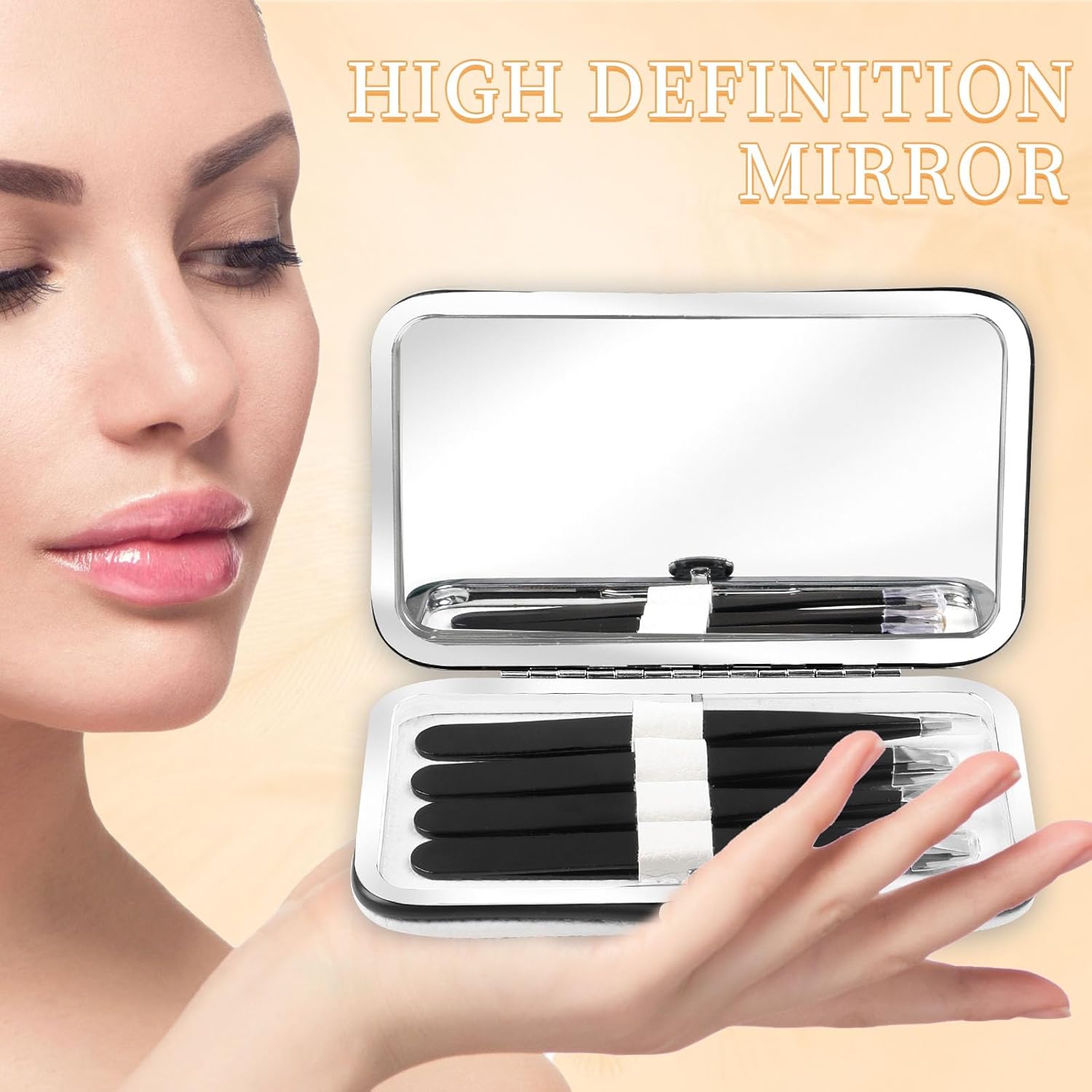 💟FREE LEATHER TRAVEL CASE: This tweezers for women set comes with a stylish mirrored leather storage case to keep your eyelash tweezers set in perfect condition and protect them from daily wear and tear. Mirrors meet daily beauty needs. Plus each tweezer has a protective cap to prevent the tips from dulling and provide safety.