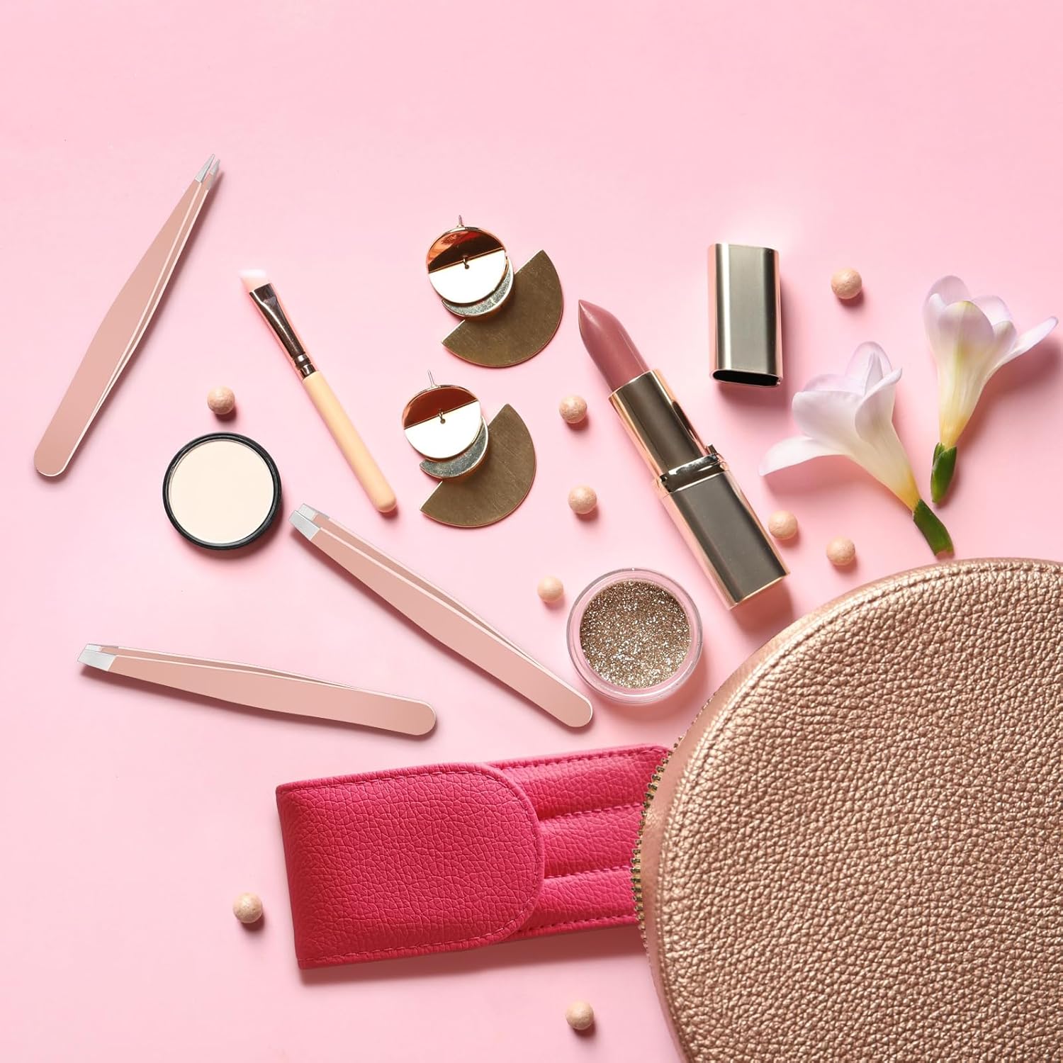 Eyebrows Tweezers Set,Stainless Steel Precision Remover Kit for Facial Hair, Inward Growing Hair and Splinter,Suitable for Women, Men (Rose)