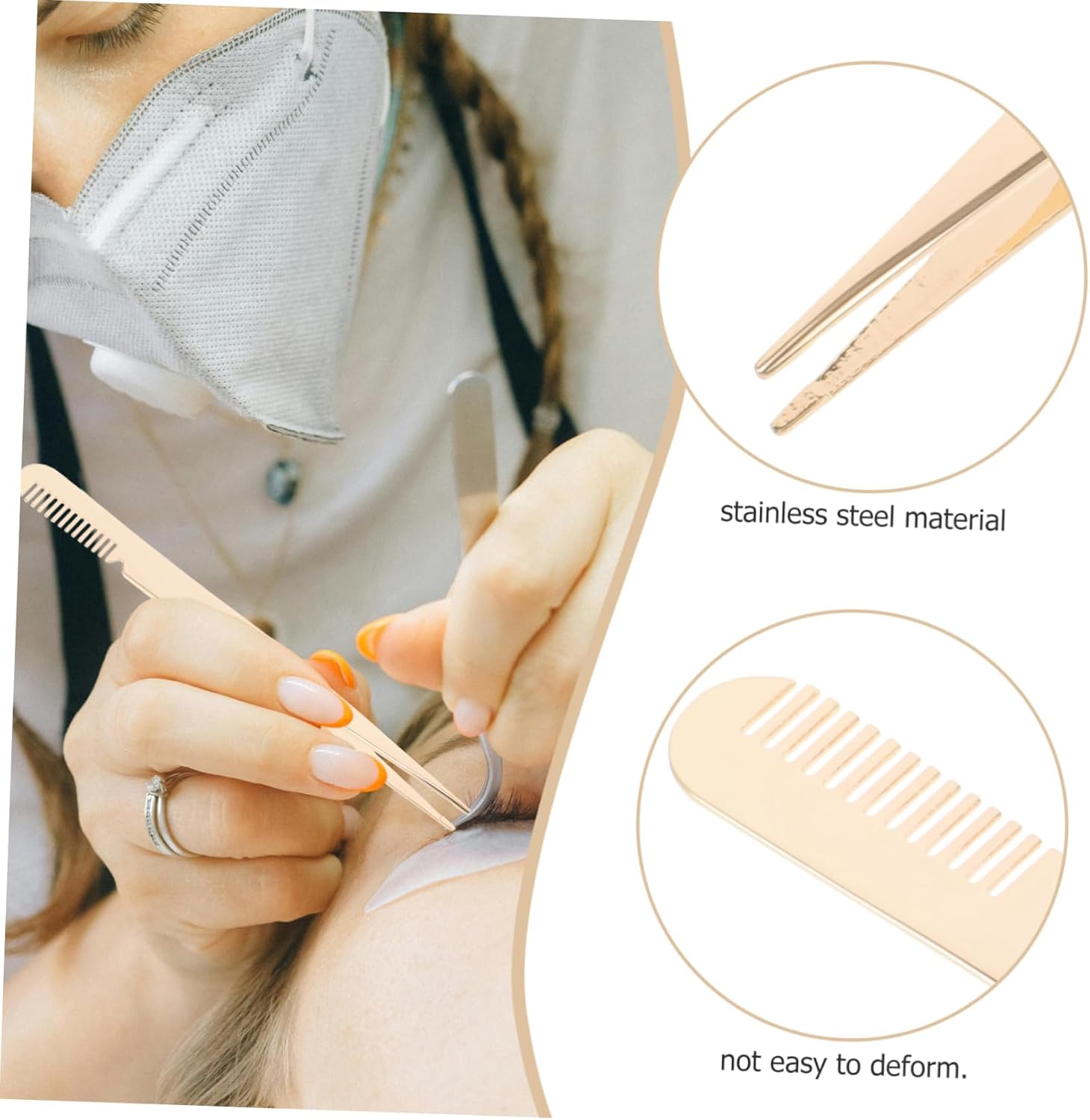 -Multipurpose and useful, can be used for curling lashes, applying mascara, applying false lashes stainless steel lash tweezers.