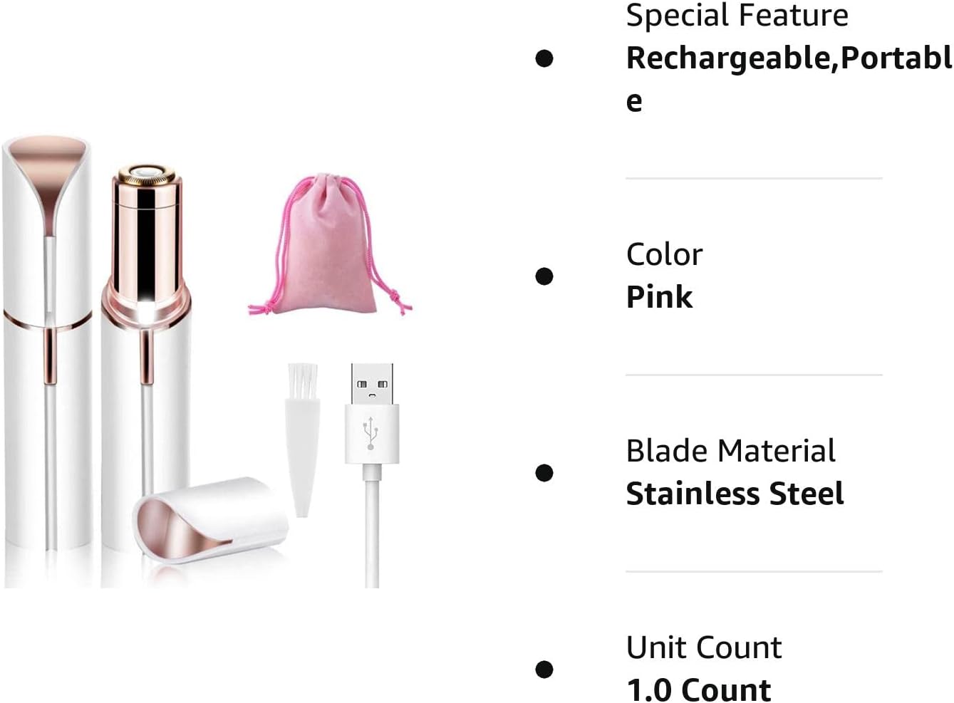 [RECHARGEABLE AND PORTABLE LIPSTICK DESIGN] The facial hair trimmer is powered by 600mAh built-in battery, charge it via PC, power bank or wall charger, making electric facial hair removal as a perfect travel mini shaver, lipstick design fits comfortably in hand, slip the hair razor into your beauty kit, bag or purse easily