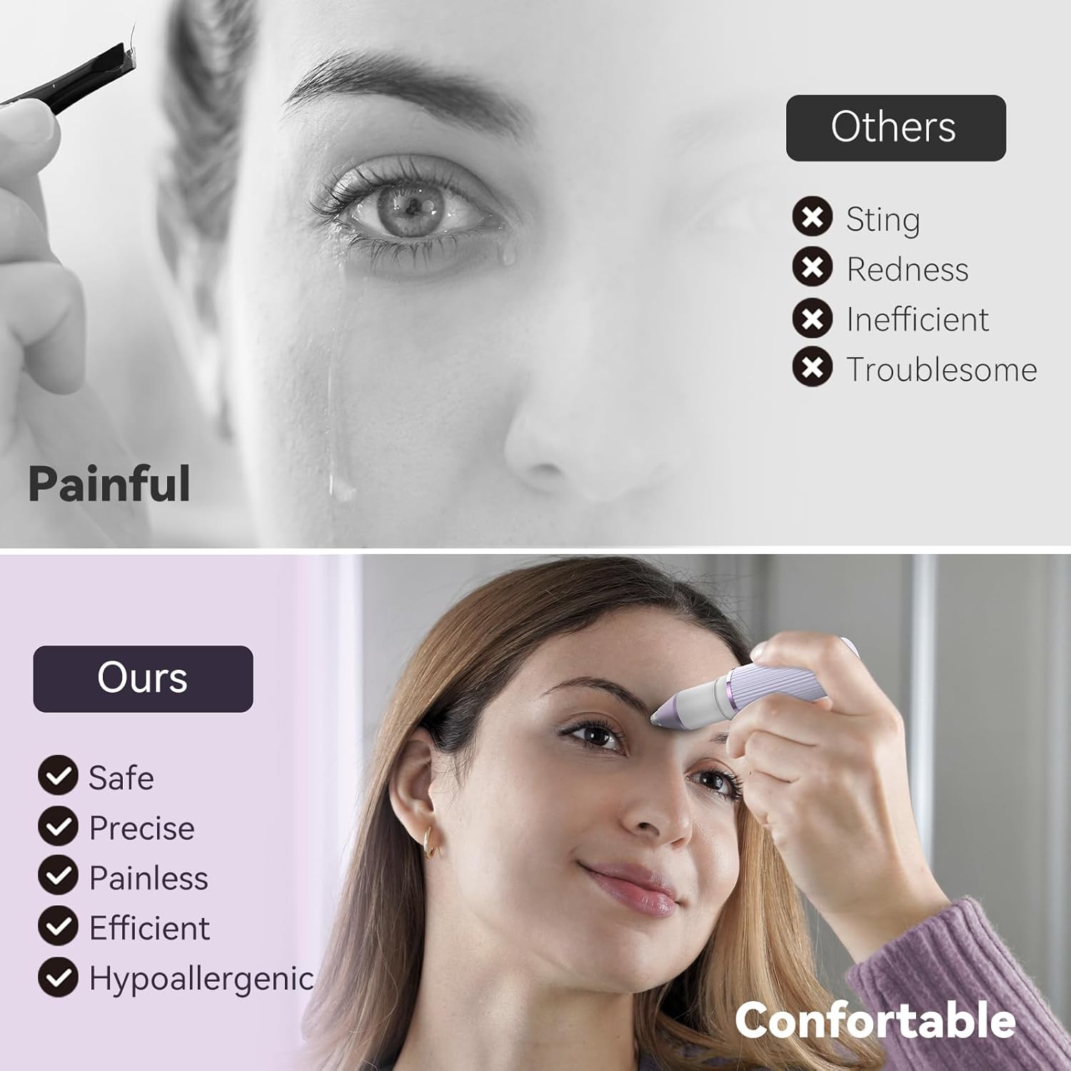 Pain-free and Safe: Bautrium 2-in-1 Facial Hair Removal for Women is designed to fit your skin and easily trim small hair tightly, effortlessly trimming fine hairs without pulling or tugging. It leaves your skin smooth and baby-soft without any scratches, cuts, or irritation, removing facial hair in just one minute.