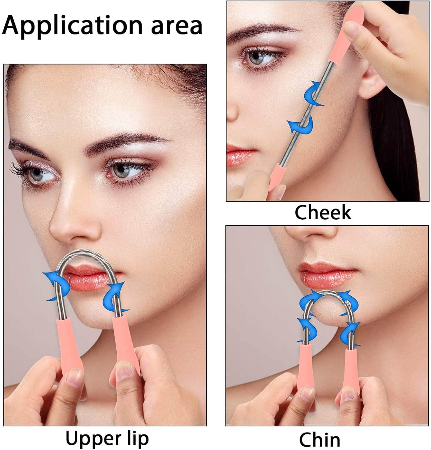 Facial Hair Remover Women, Stainless Steel Portable Epilator Face Coil Spring Threading Tool Manual Removal Set for Removing Unwanted Upper Lip Chin Cheeks Mustache and Neck Sideburns Unsightly Fuzz