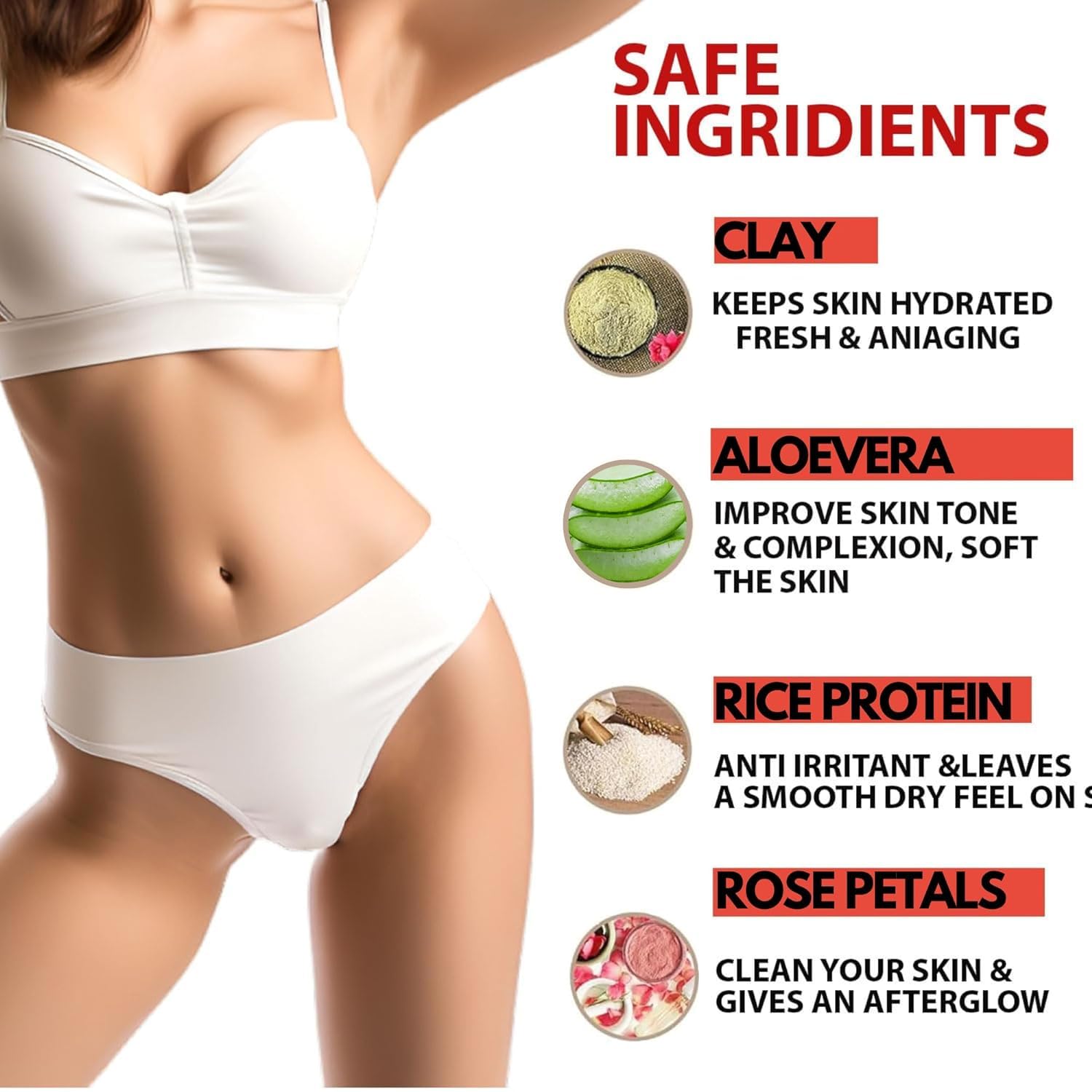 【Natural Ingridients】: Our Facial Wax for women boasts a revolutionary formula includes safe & natural ingridients such as Multani Mitti, Rose Petals, Rice Protien & Clay & also our waxing powder for hair removal is free from Parabens & Ammonia.