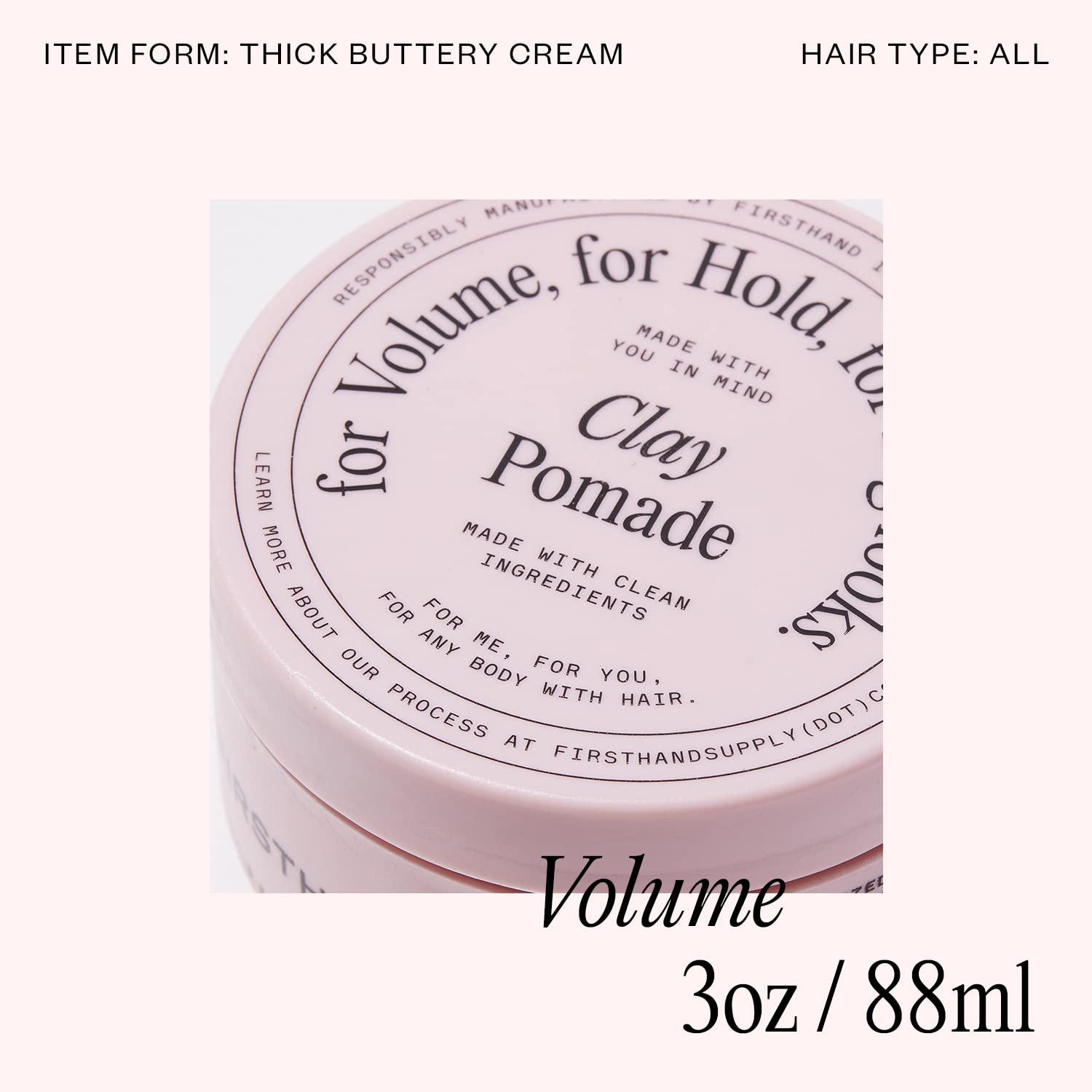 Firsthand Supply Clay Pomade – Clean & Non-toxic Hair Care Ingredients – Long Lasting & Easy to Restyle – 3oz (88ml)
