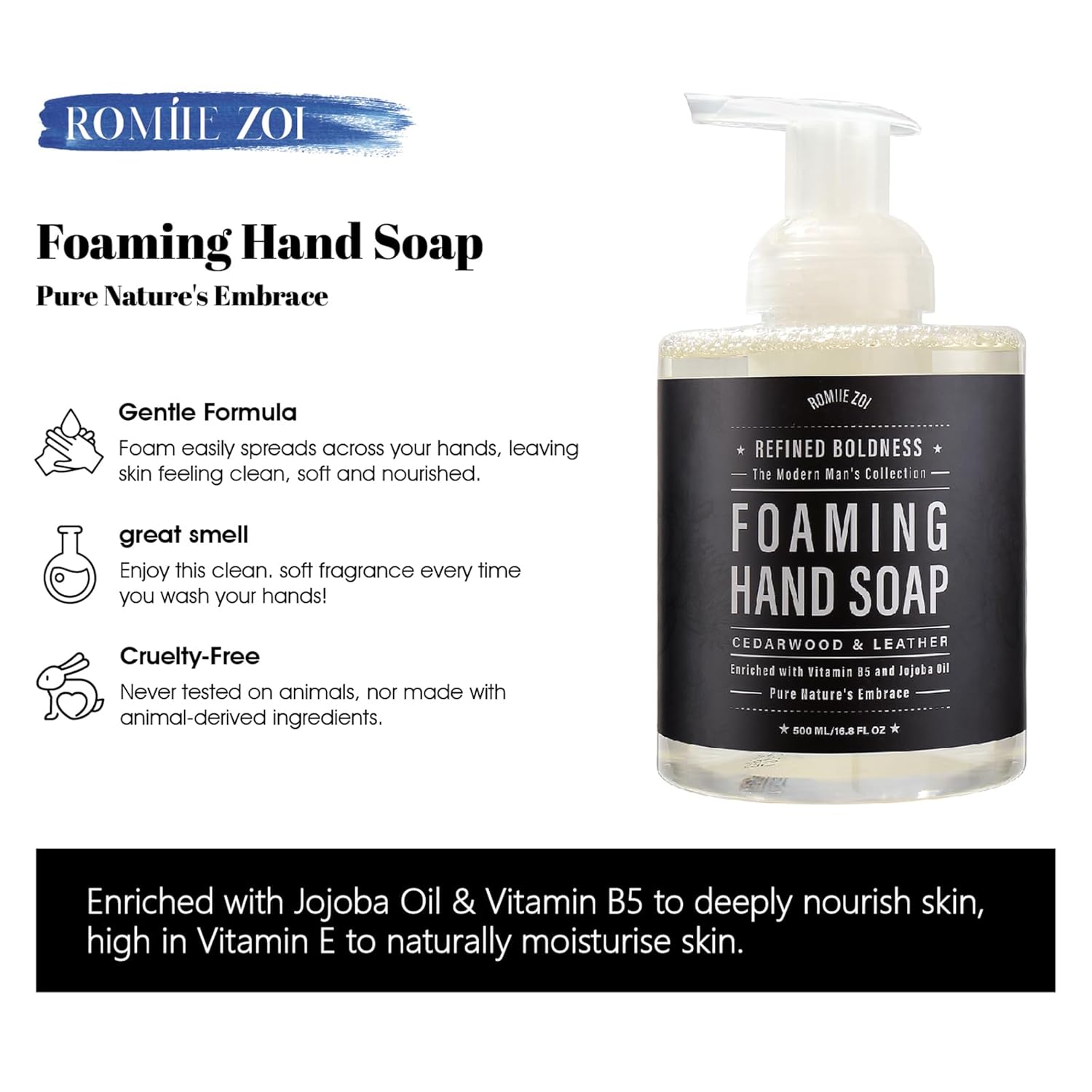 Foaming Hand Soap for Men, Father’s Day Gift – Infused with Cedarwood & Leather Aroma – Refined Boldness 500 ML / 16.8 FL OZ