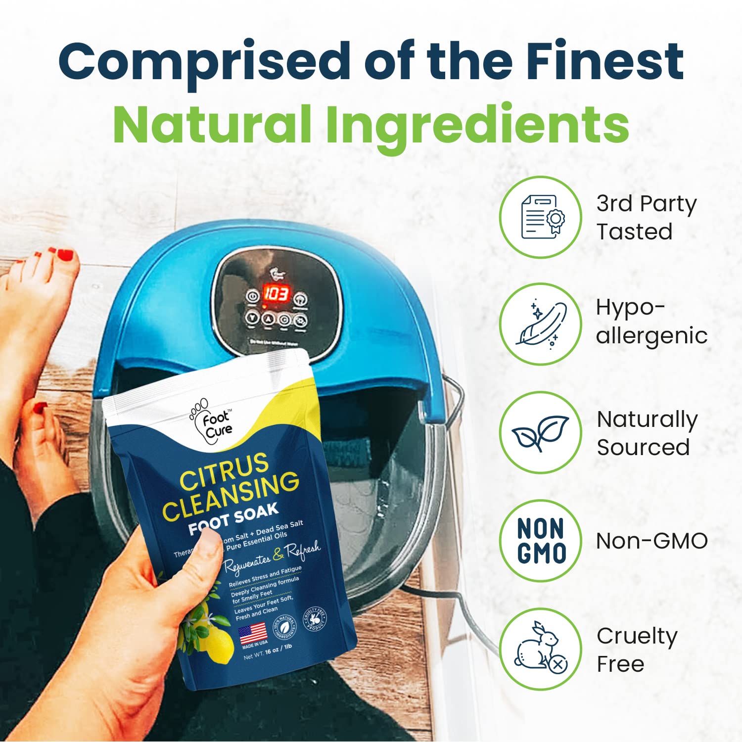 100% NATURAL INGREDIENTS – MADE IN THE USA: Made of 100% Pure Dead Sea Salts, Epsom Salts, and other all-natural herbs and essential oils, the FootCure foot soaks are perfectly safe even for those with sensitive skin. Made in the USA, Cruelty-Free and with zero fillers, these soaking salts will grant you the best spa-like experience in the comfort of your home!