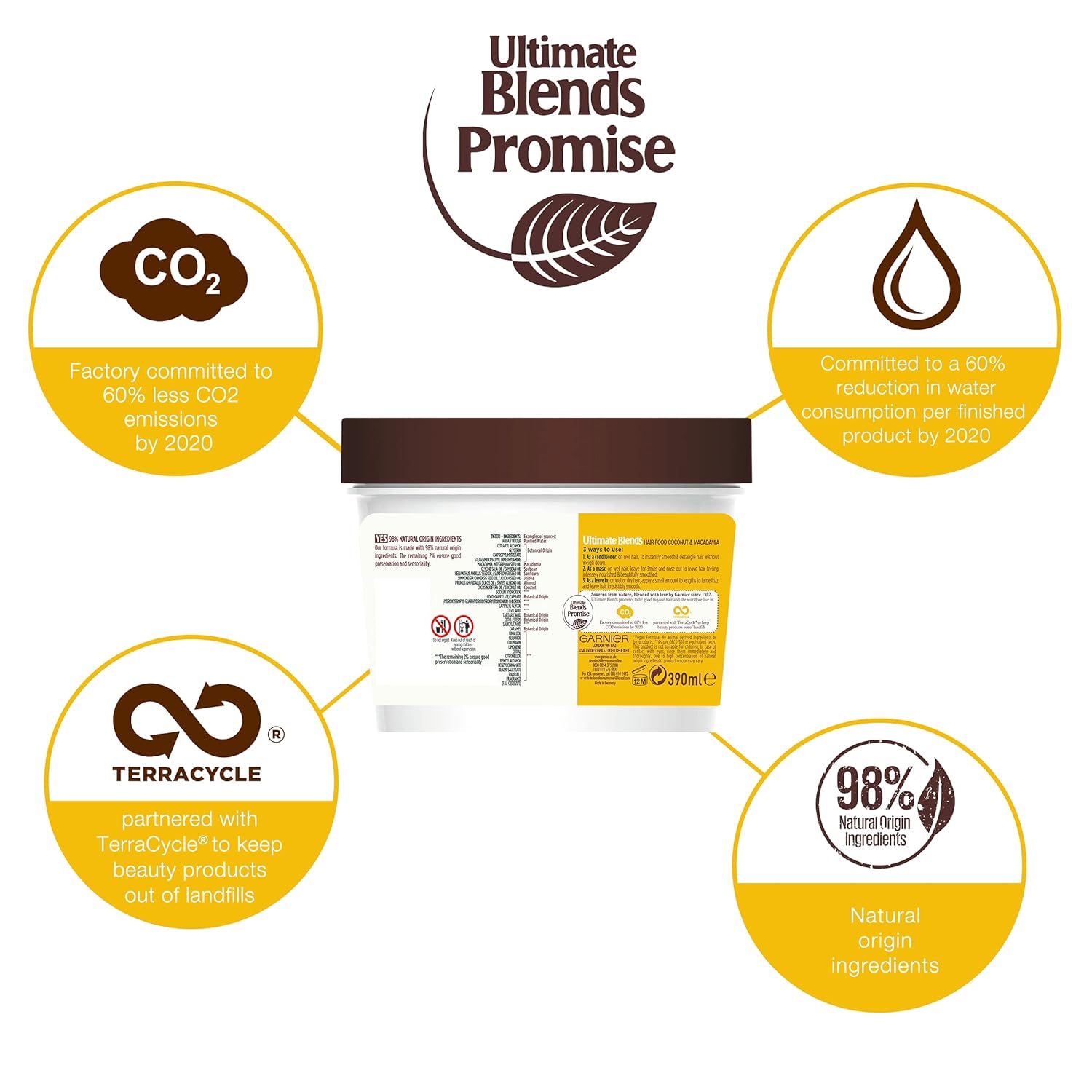 Contents: 1x Garnier Ultimate Blends, Hair Food Coco-Macadamia 3-in-1 Hair Treatment Mask, For Frizzy & Curly Hair, Vegan Formula, Volume: 400ml