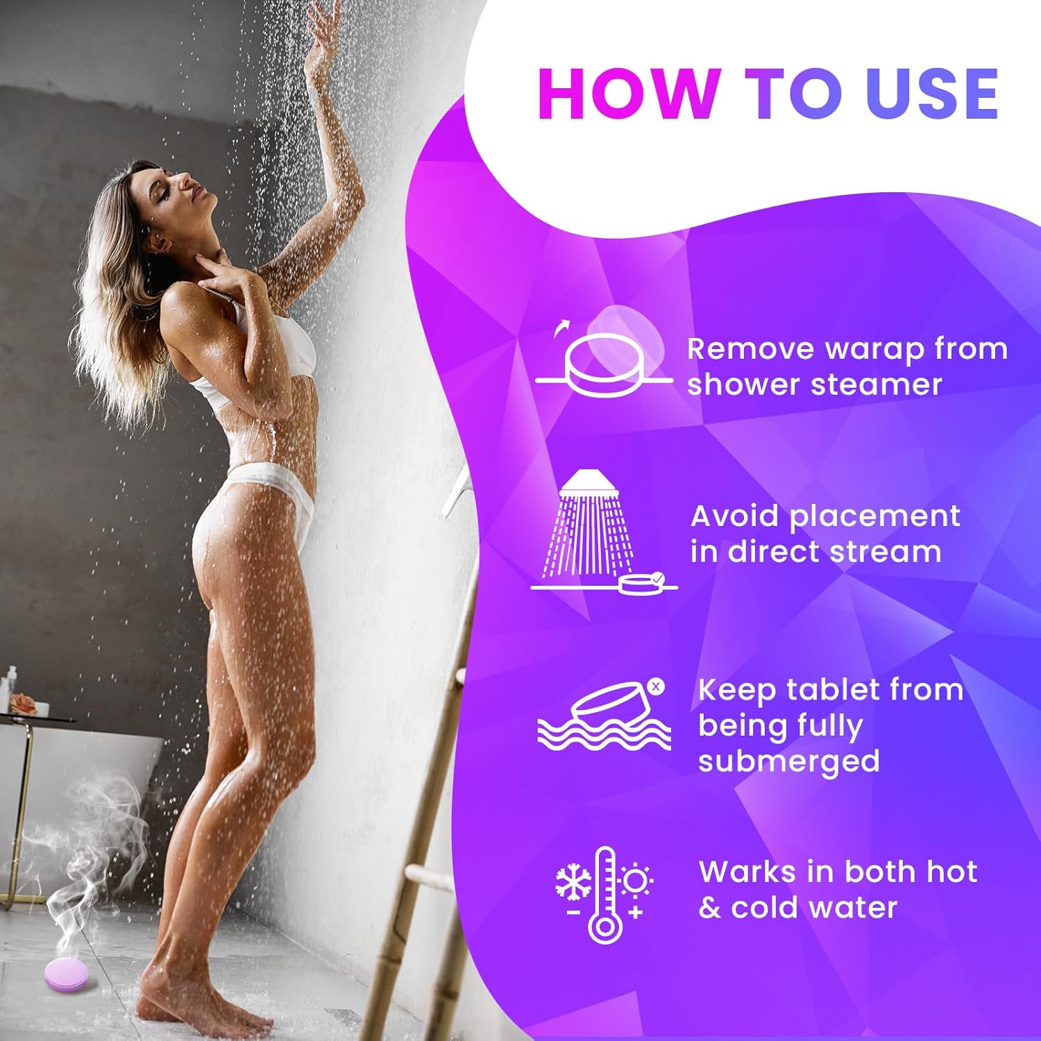 Self Care & Home SPA: Our aromatherapy shower steamers gifts for women and men are made cruelty-free with essential oils, natural fragrances and offer pleasantly strong scents. Enjoy the benefits of an aromatherapy spa from home. Enjoy daily serenity as you shower the stress away. No need for a bathtub, place one of your shower melts in the corner of your shower and do not submerge it. Breathe slowly and deeply and enjoy the moment.