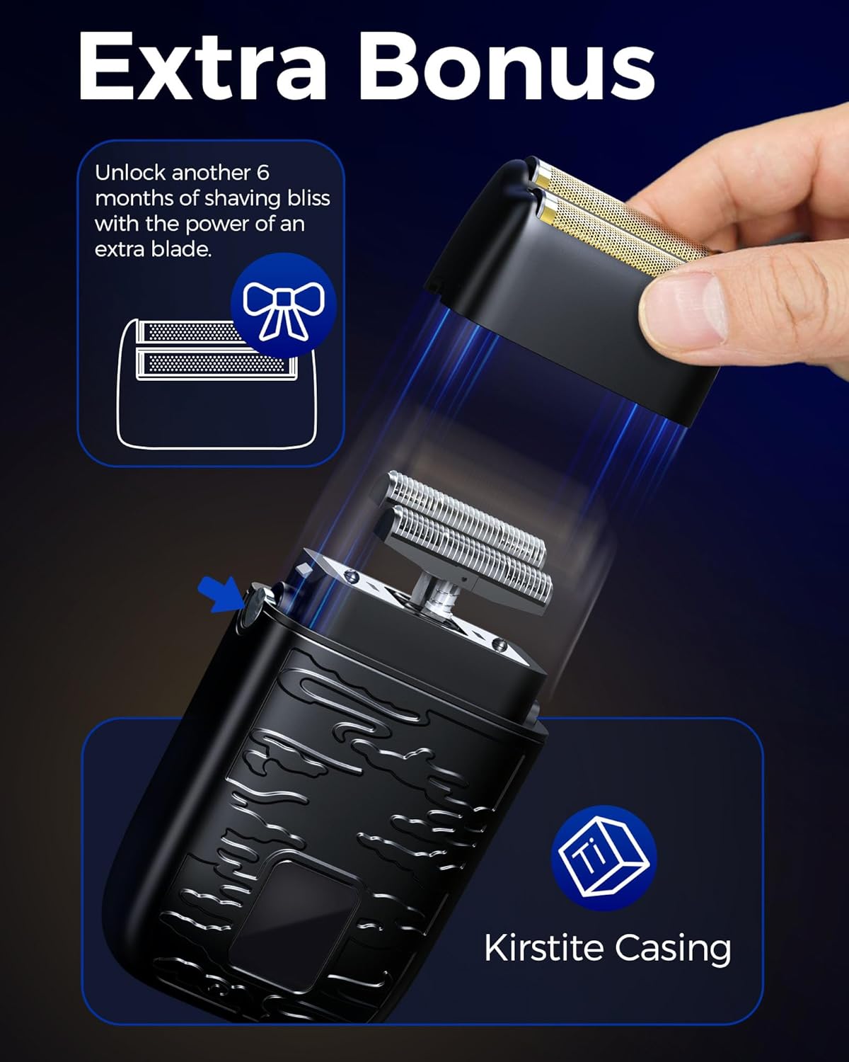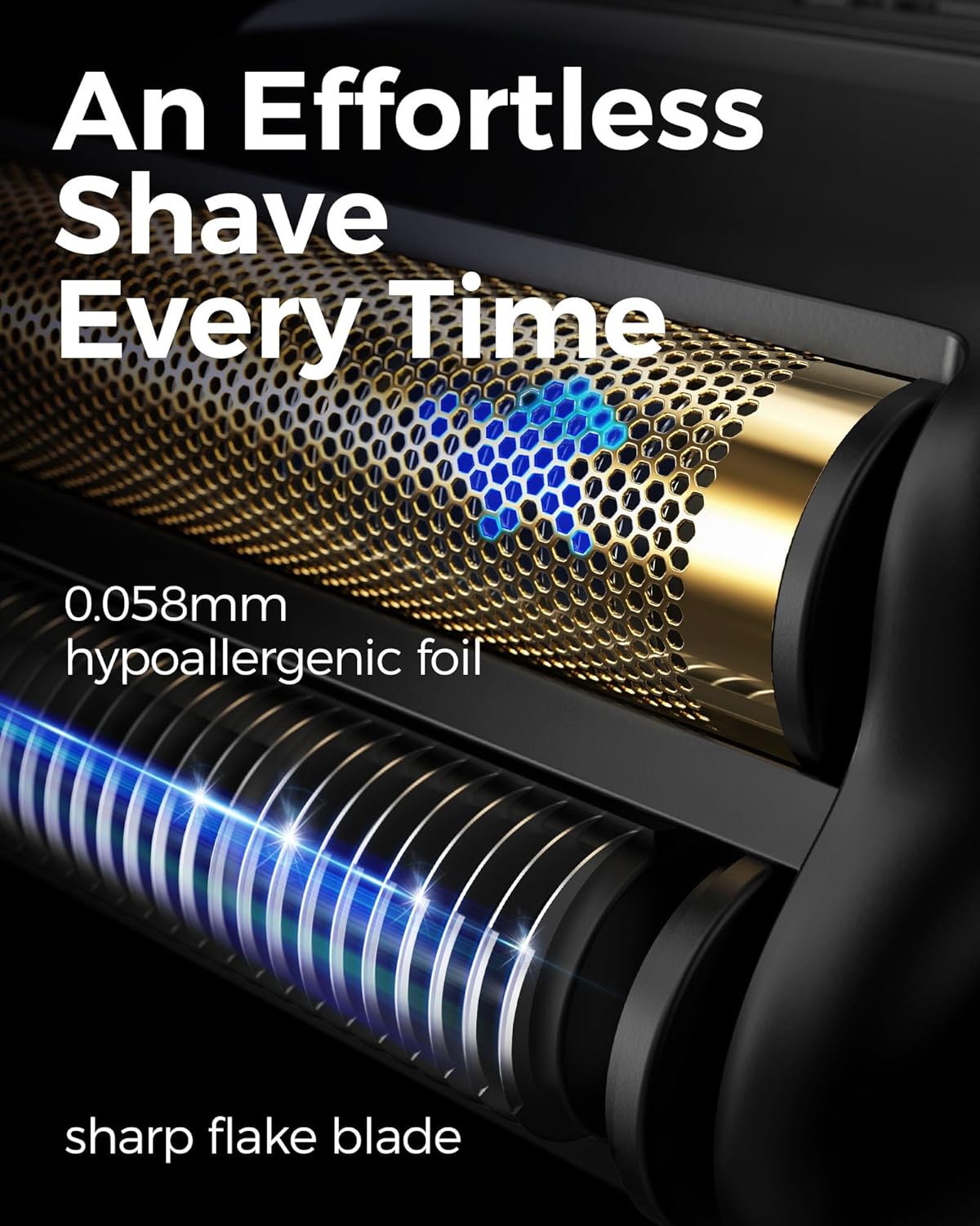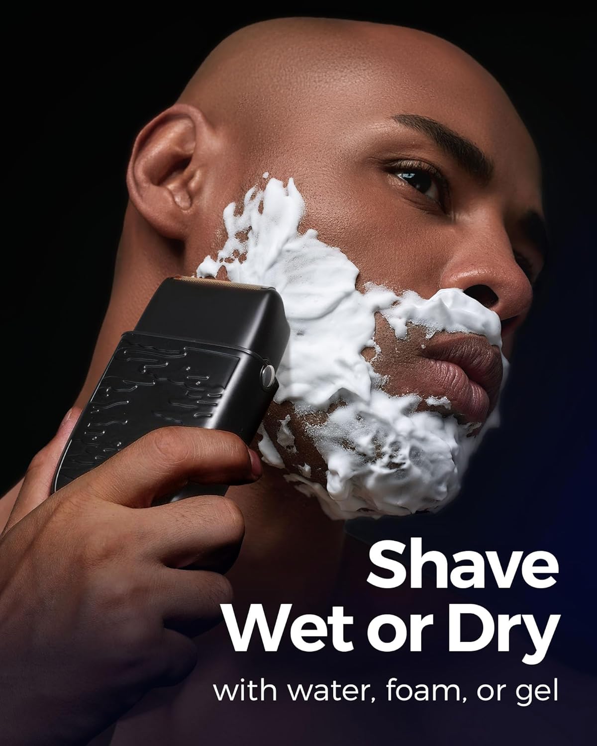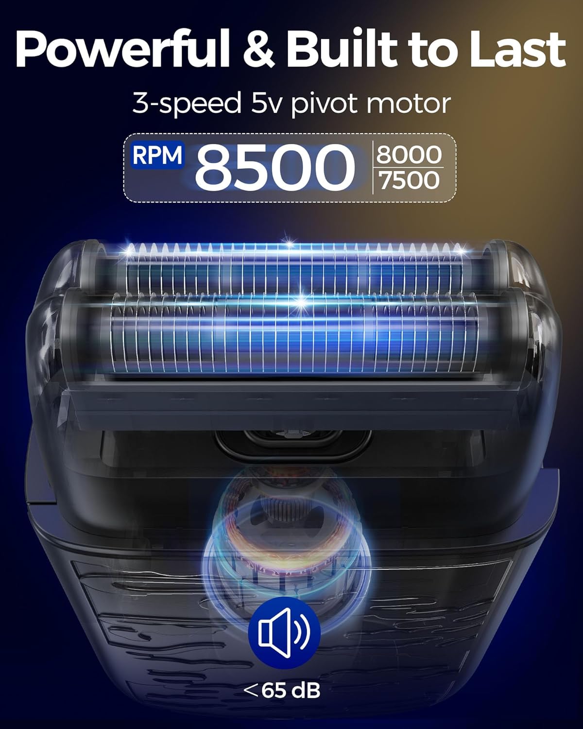 SIMPLIFY YOUR GROOMING ROUTINE – One of its standout features is the ease of use and quick maintenance, thanks to its detachable titanium blade and IPX6 waterproof design. Besides, the heavy-duty motor (running up to 8500 rpm) and 3 optional speeds make this hair razor up to 4x more effective than other mens foil shavers on the market.