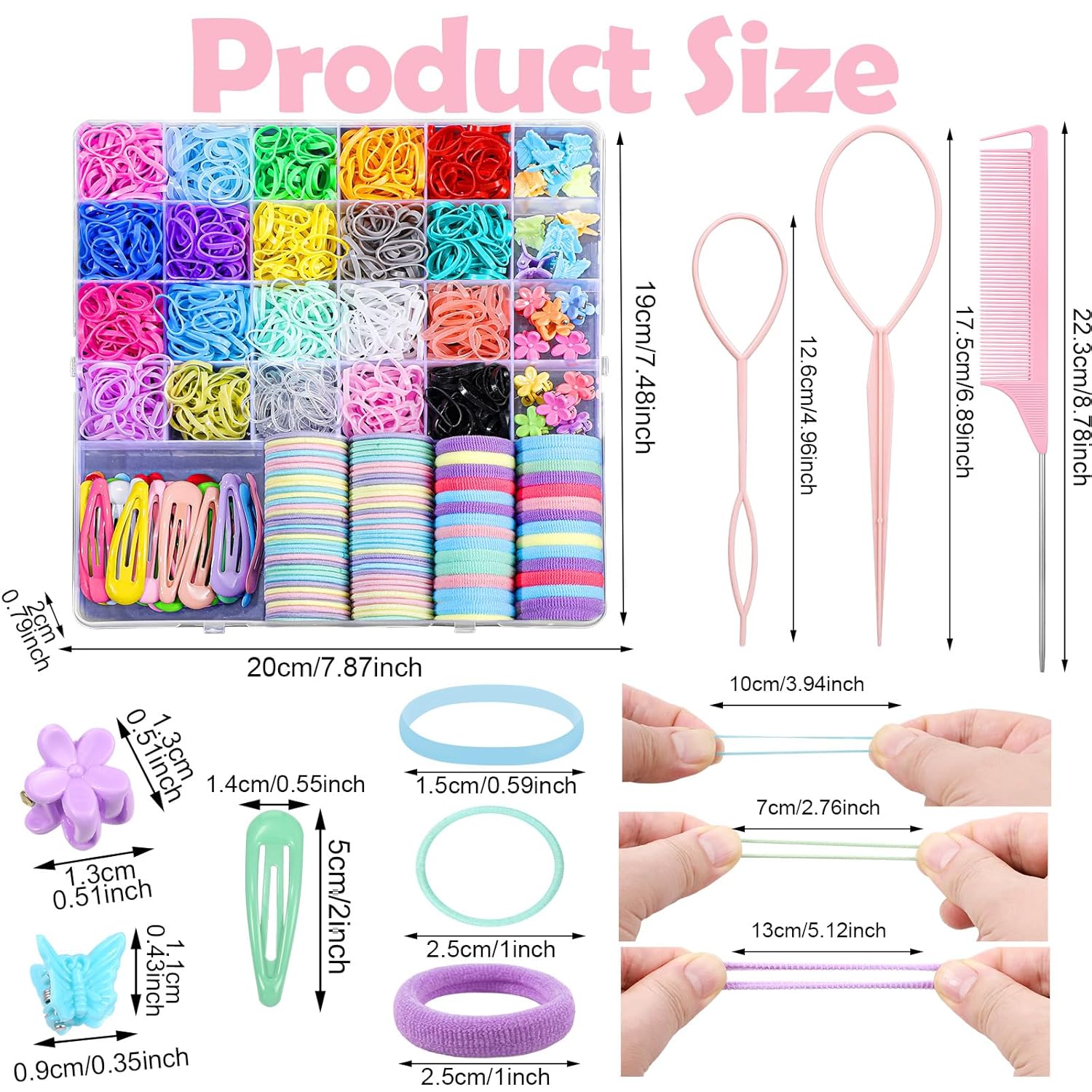 Hair Accessories for Girl, 1543 Pcs Elastic Hair Rubber Bands Set 20 Colors Elastic Hair Ties with Organizer Box Cotton Baby Hair Ties, Hair Tail Tools, Rat Tail Comb, Butterfly Hair Clips