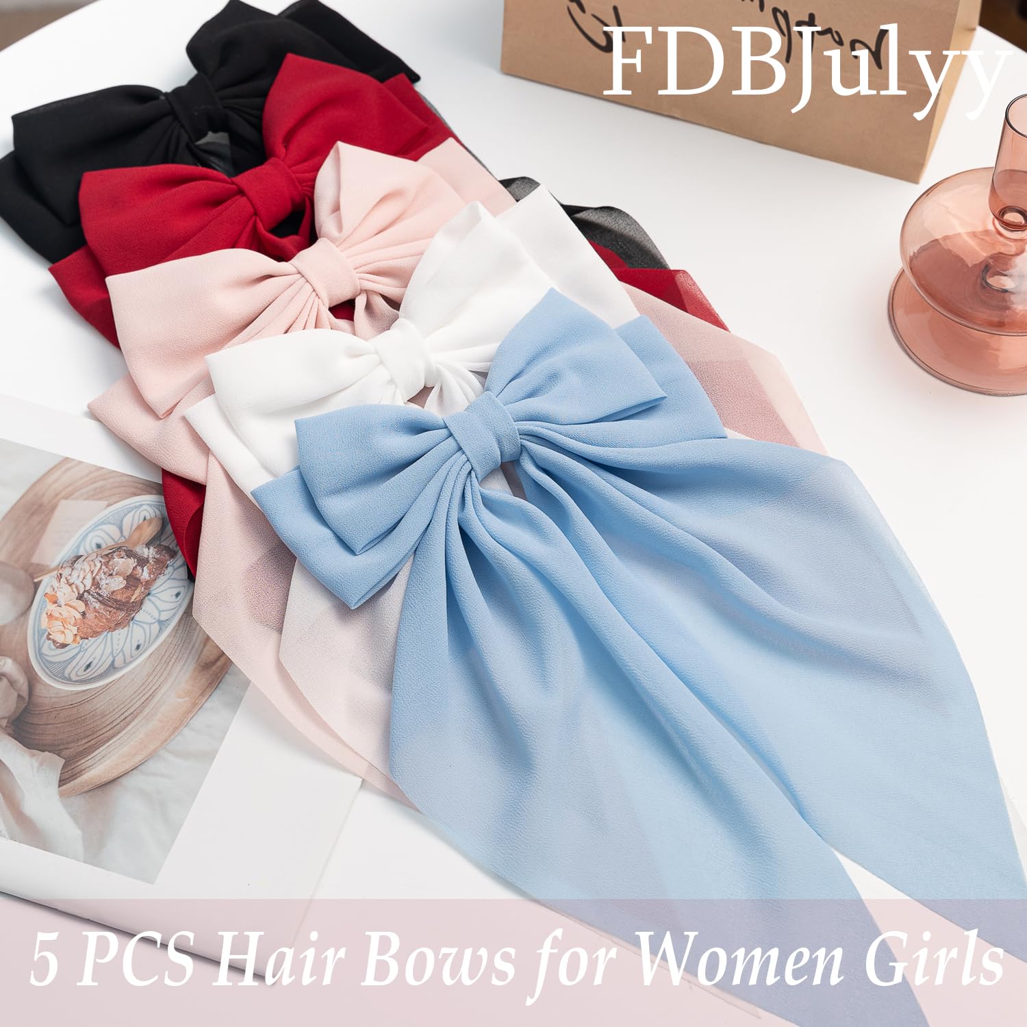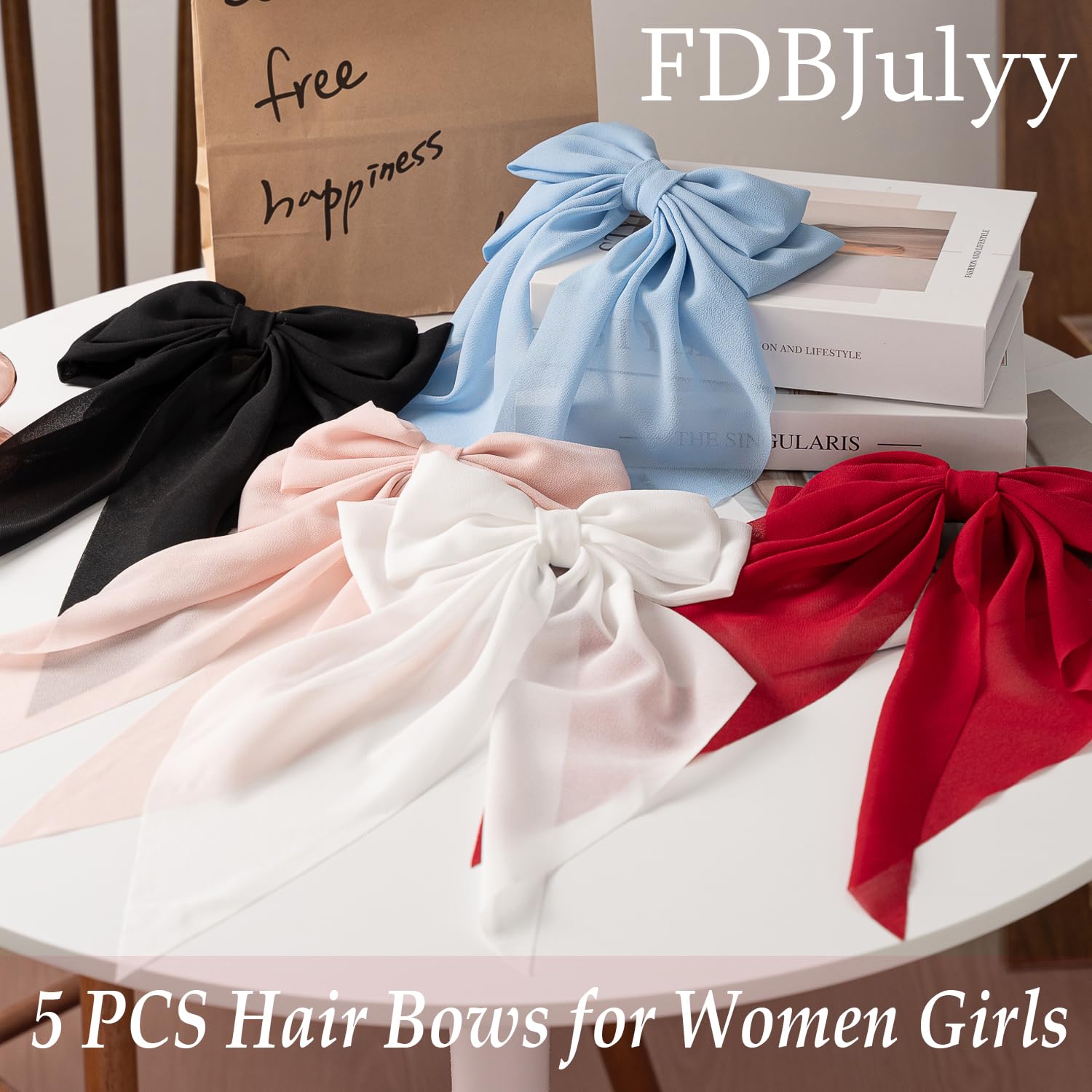 Hair Bows 5 PCS hair ribbon Hair Bows for Women Girls,Big Bows Hair Clips,Bow-knot Hair Clips for Women Thick Hair & Thin Hair,Nonslip Bows Claw Clips for Women, Bow Clips for Women,Bow Clips