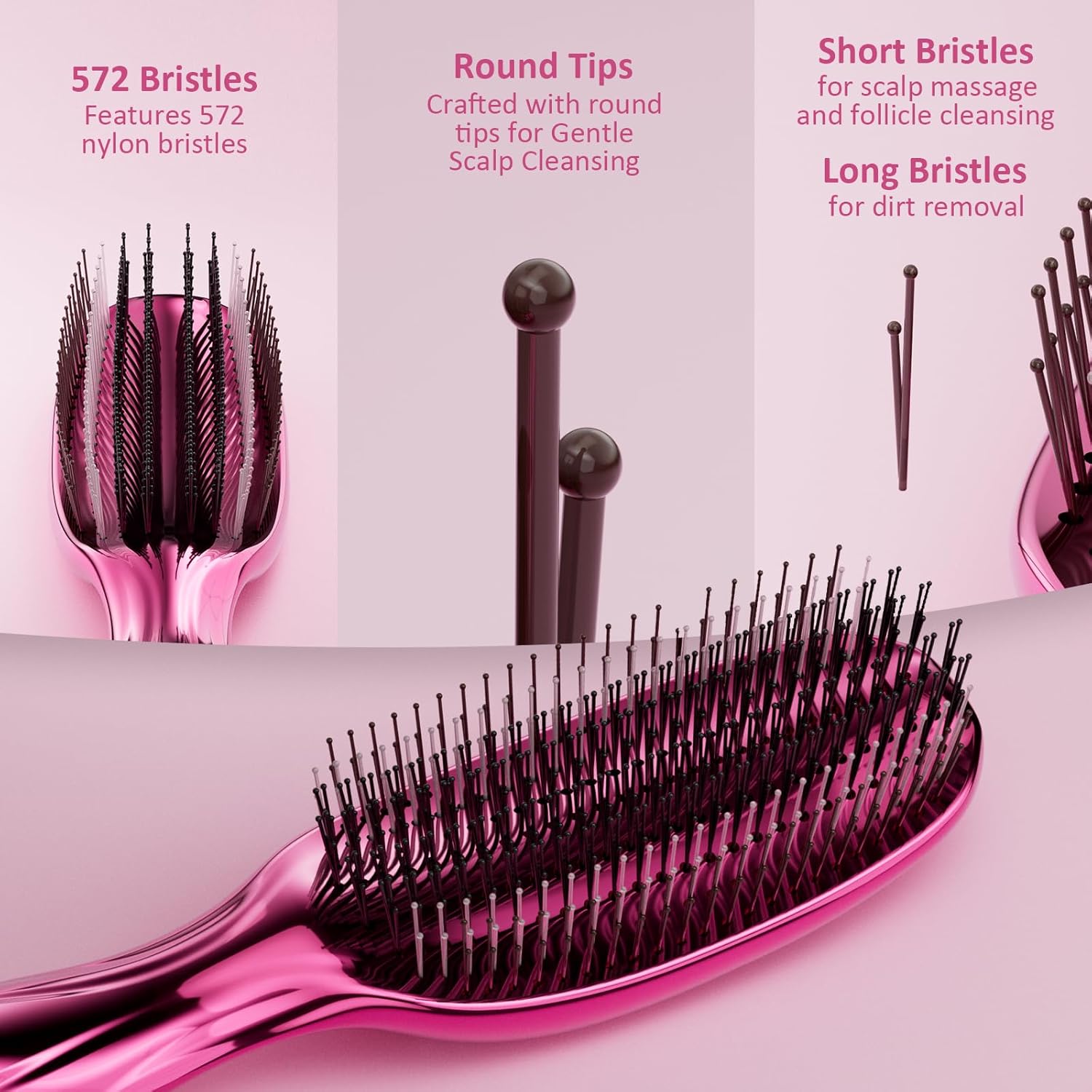 Hair Brush, 572 Soft Nylon Bristles for Scalp Massage, Scalp Cleaning and Restore Scalp Health, Luxury Christmas Gifts for Women with Thin or Fine Hair, Pink