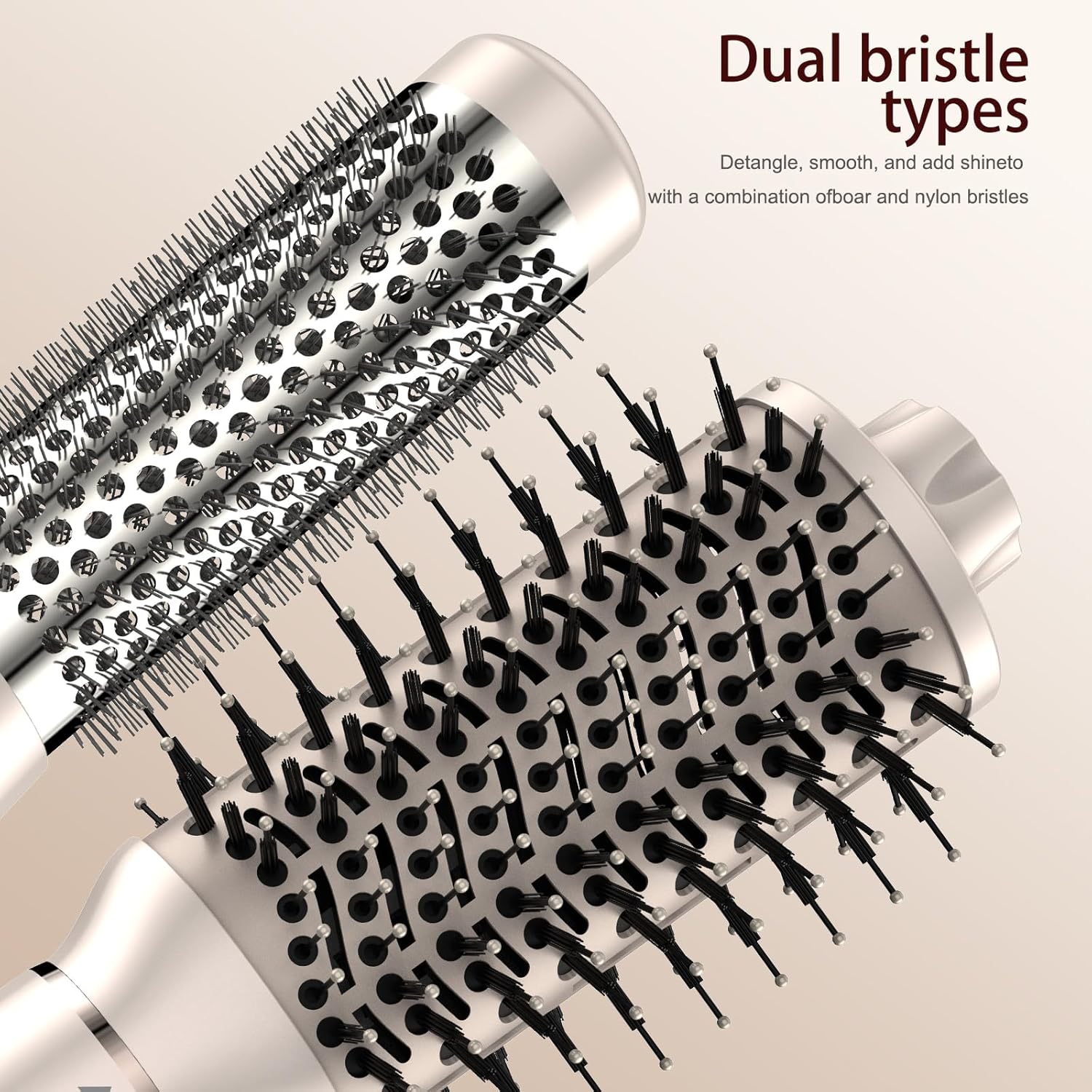 【5-In-1 Styling Set】This is a multi-functional styling tool set that can meet all your hair styling needs, our multi-functional styling kit includes hair dryer brush, hair straightener, left&right automatic rotating curling iron 1.25 inches, hair straightening and curling smoothing brush, and an exquisite storage box. The hair brush blow dryer plug has a standard US ALCI Safety Plug Auto Leakage Protection. This all-in-one kit is perfect for creating salon-quality hair at home.