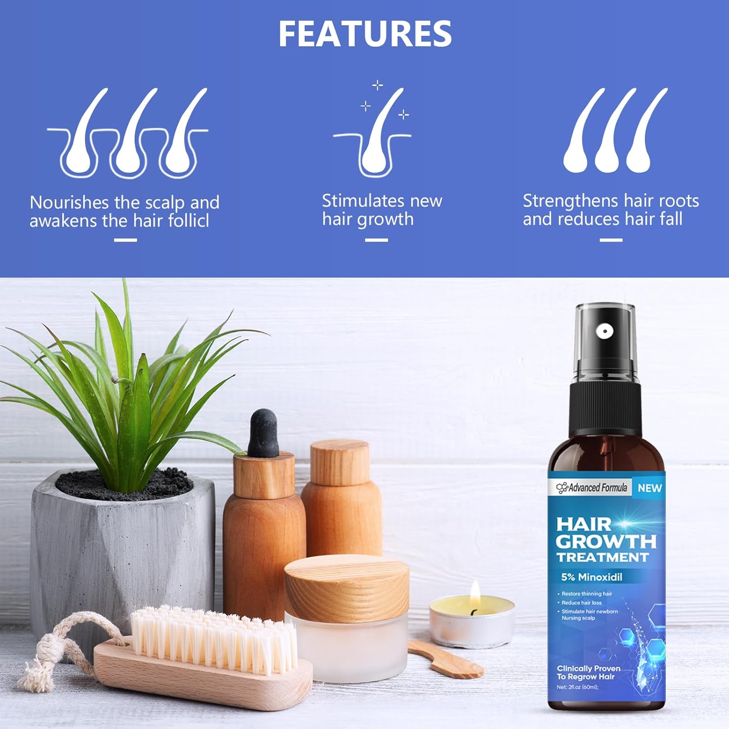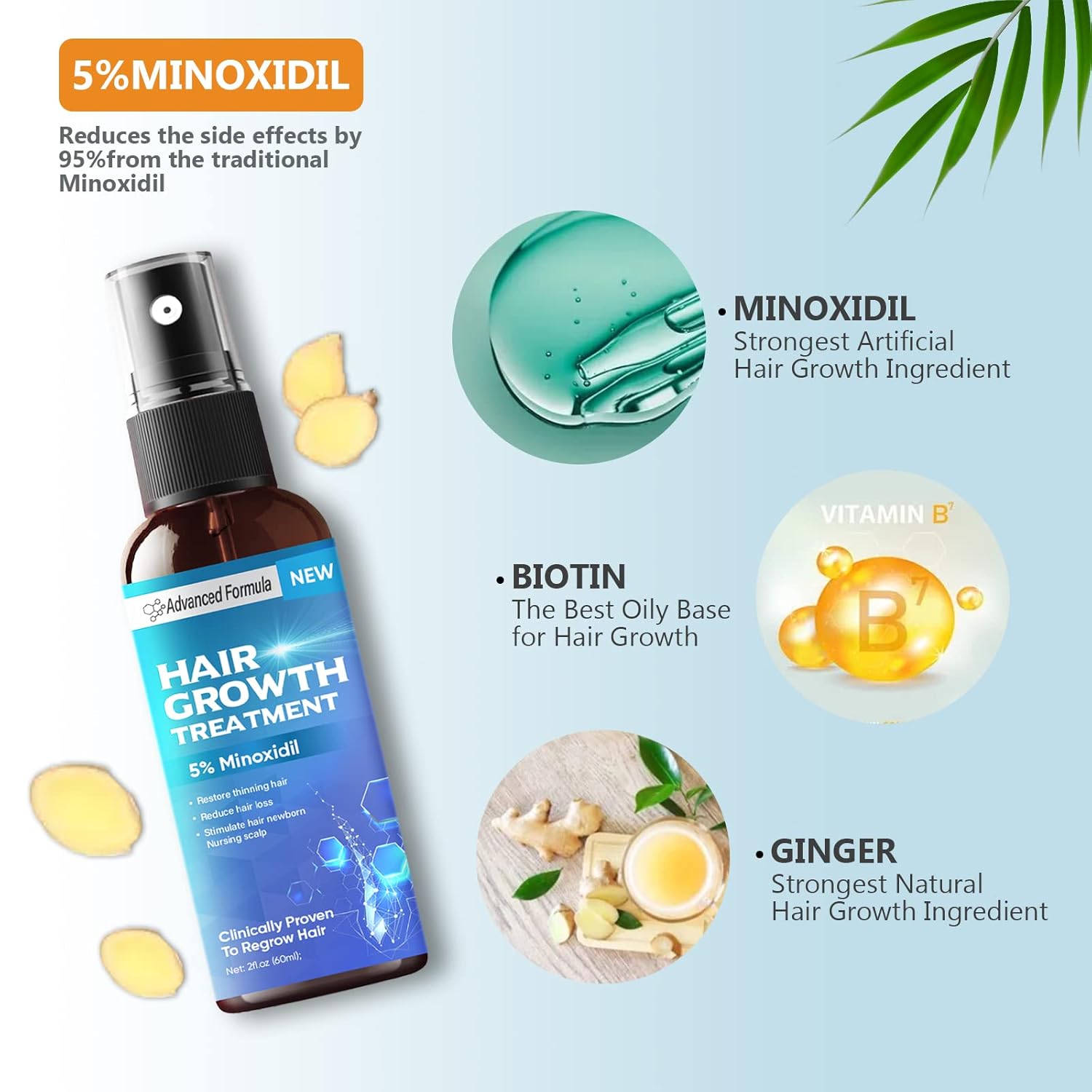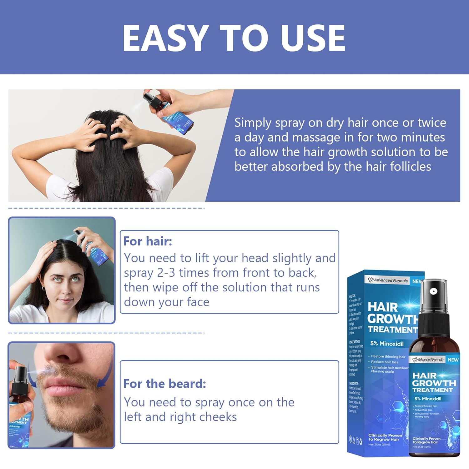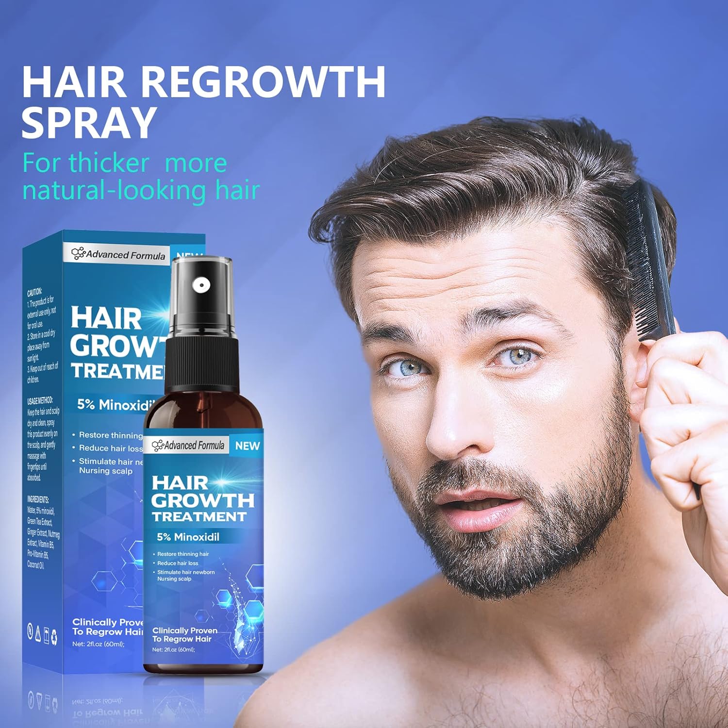 【Natural and Advanced Ingredients】: This hair and beard spray consists of a variety of natural ingredients, such as biotin, ginger extract, which is recommended by dermatologists as the go-to ingredient for hair loss. Clinical trials have proved that it can effectively promote hair growth, you can rest assured to use.