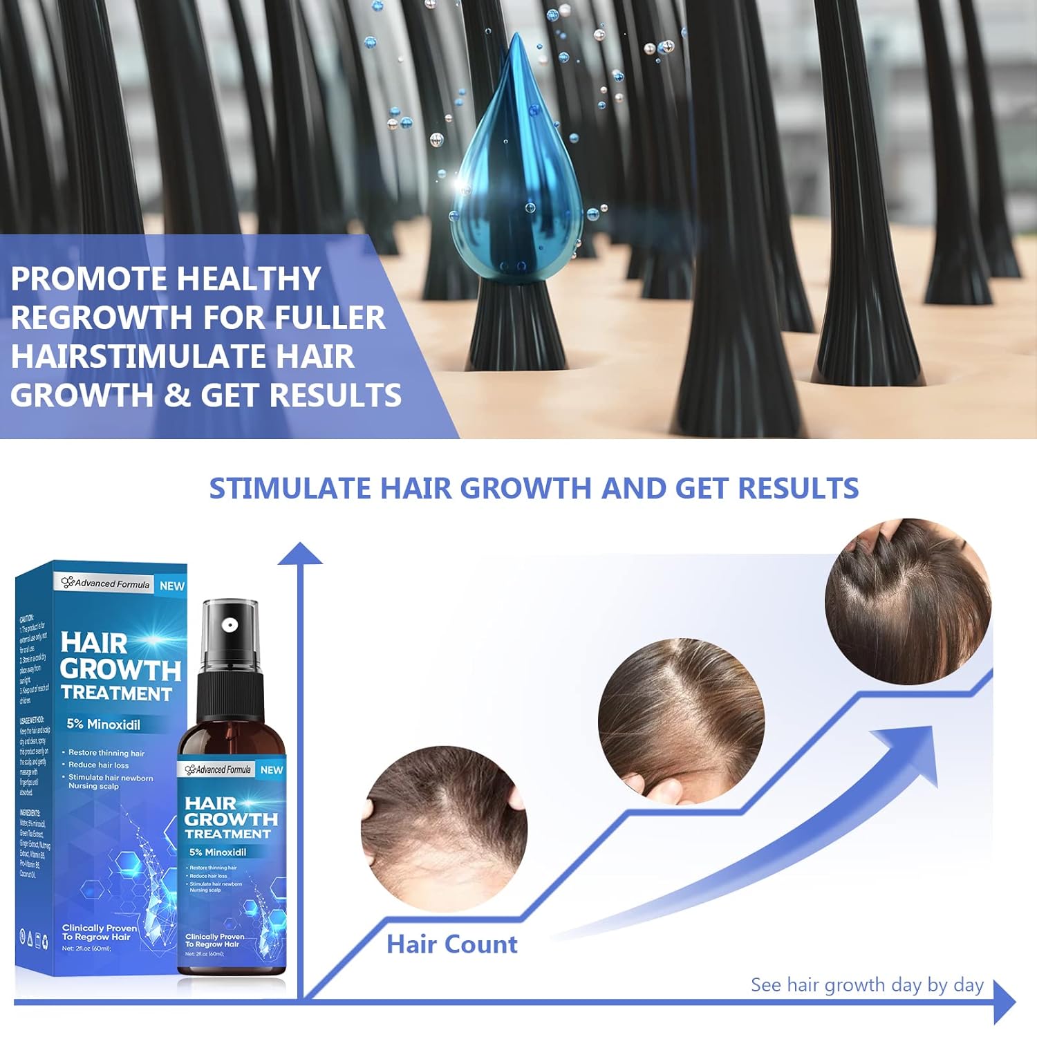 【Broadly Applicable】:The Hair Growth Serum has a refreshing, non-sticky texture and is suitable for women and men with all hair types to help solve the problem of hair loss, thinning or damage and restore the full appearance of hair or beard.