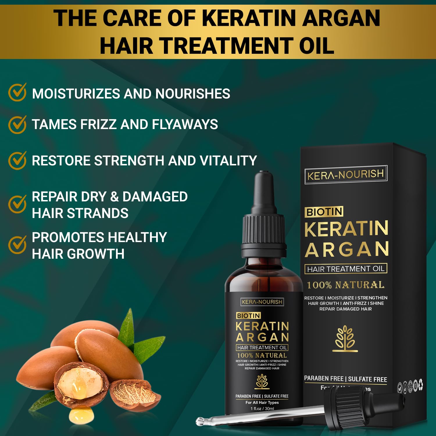 NATURAL PRODUCTS: Proud to be 100% Natural, Cruelty Free, Paraben Free and Sulfate Free. Our Hair Treatment Oil for dry damaged hair with powerful blend of ingredients, Keratin, Biotin, Moroccan Argan oil, Coconut oil, Avocado Vitamin E Oil and Jojoba seed oil help to improve the overall health and appearance of your hair, leaving it looking shiny, smooth, and frizz-free.