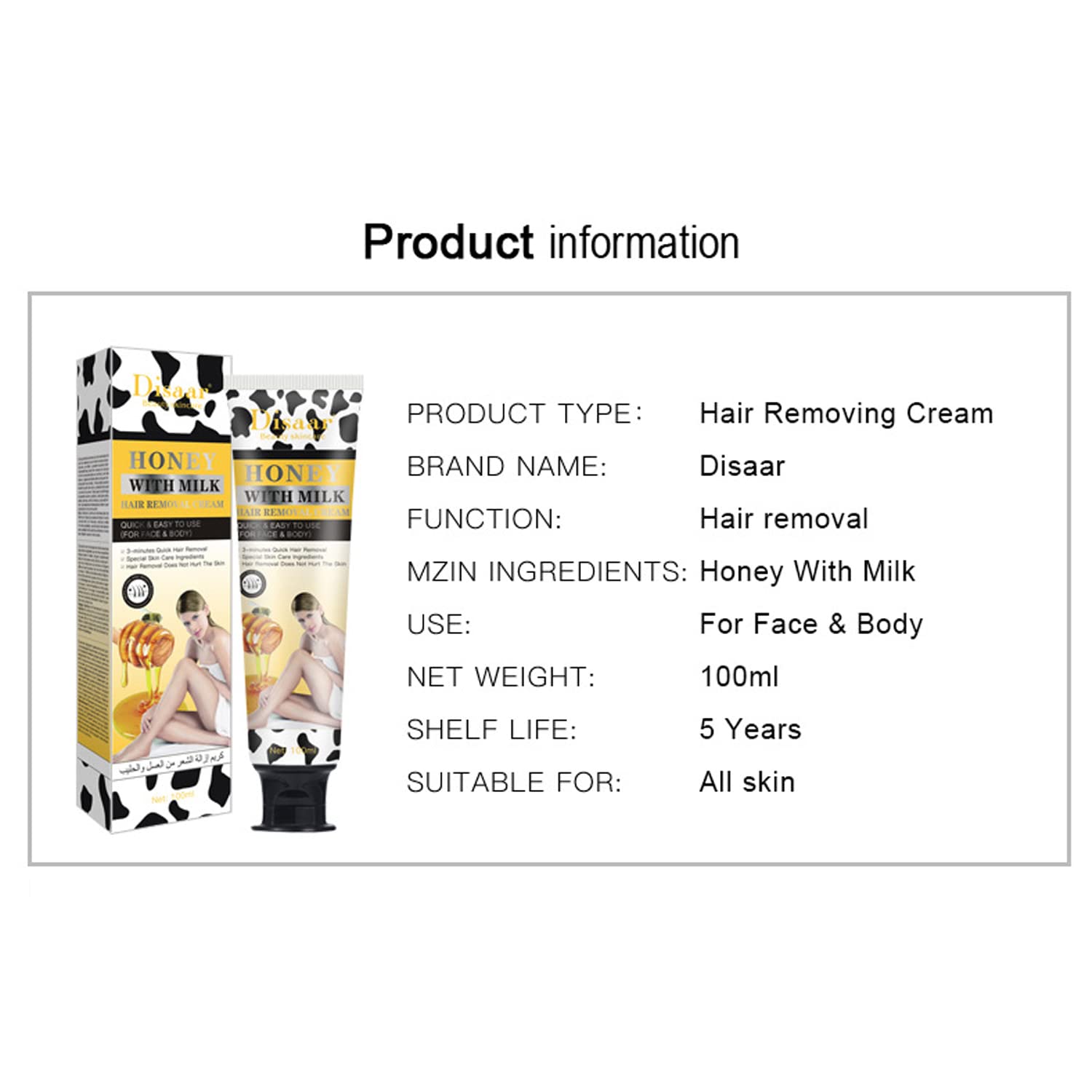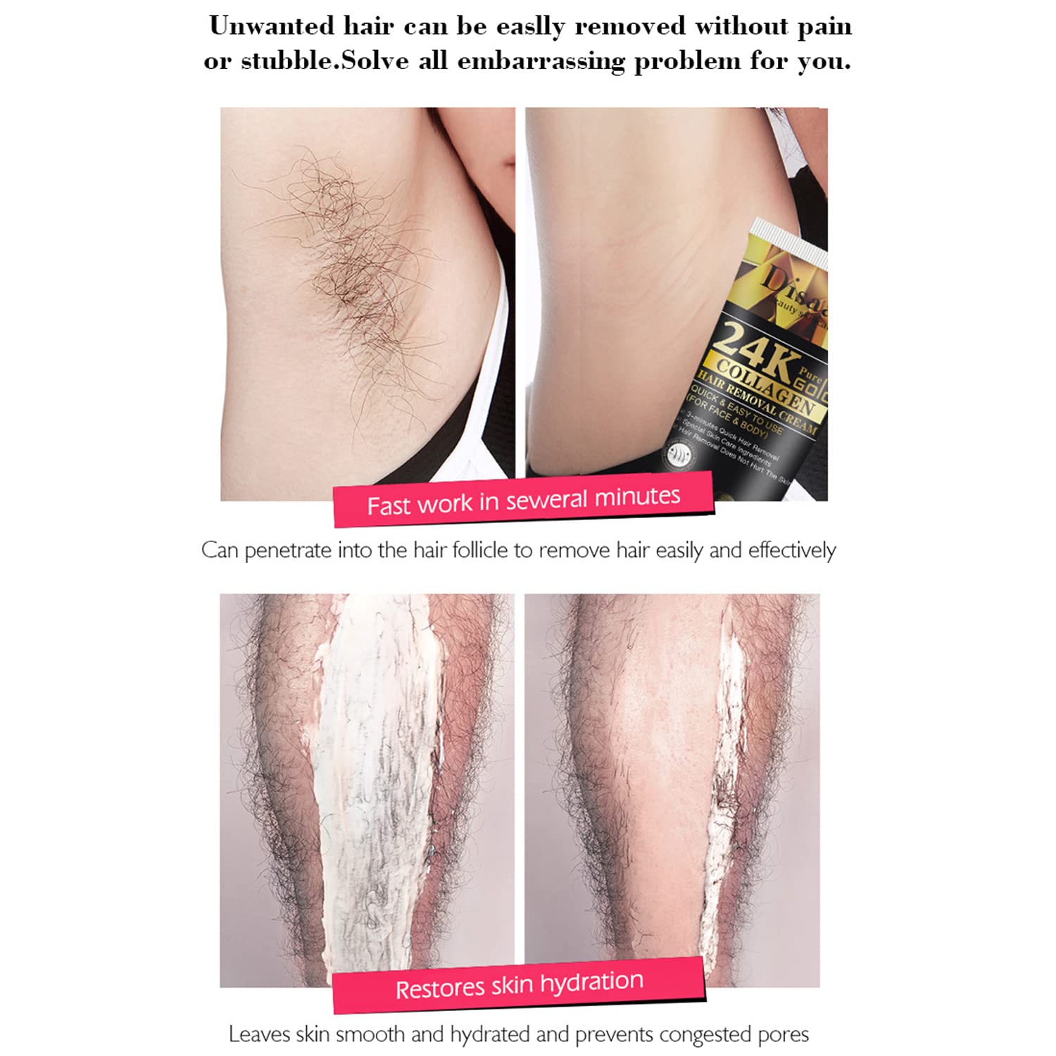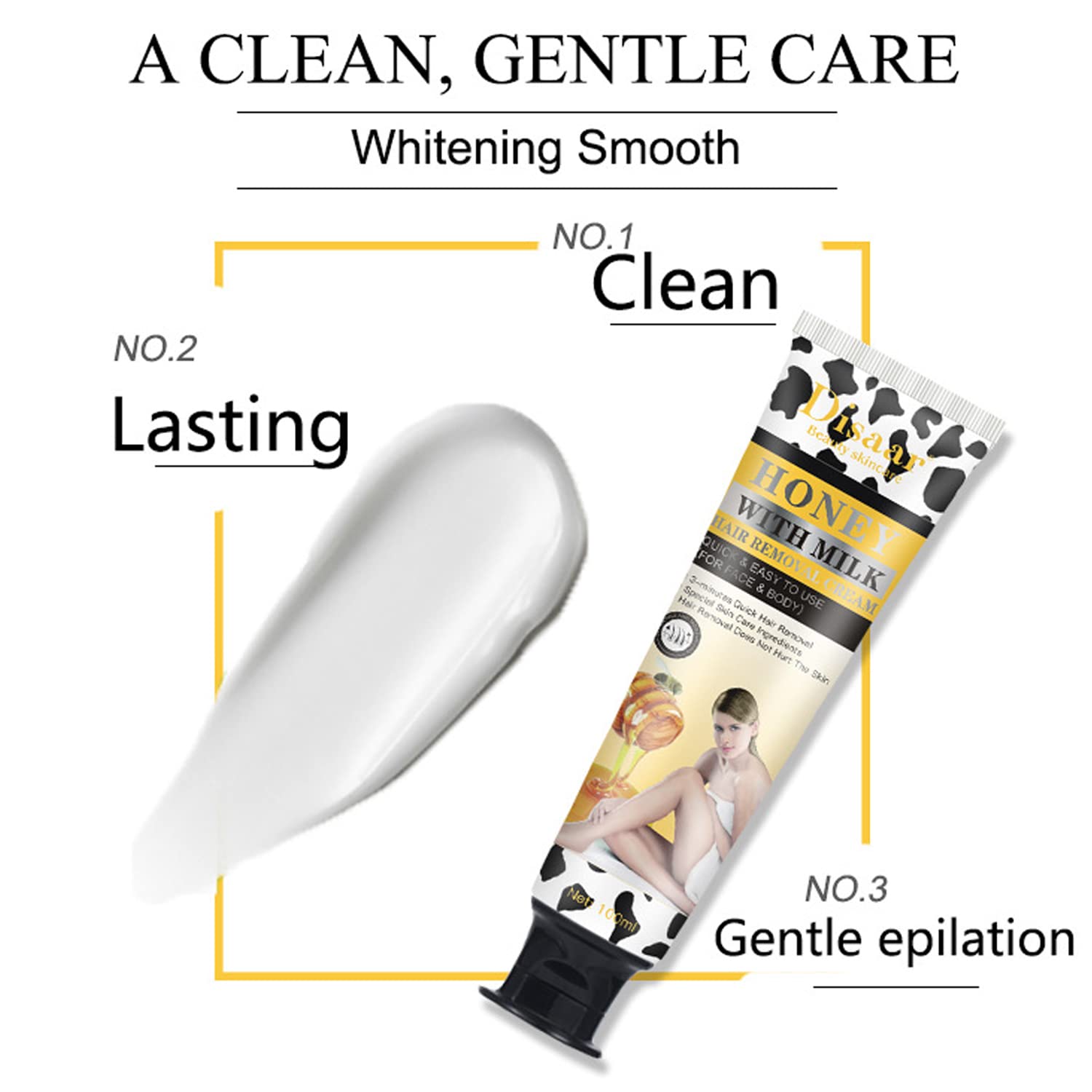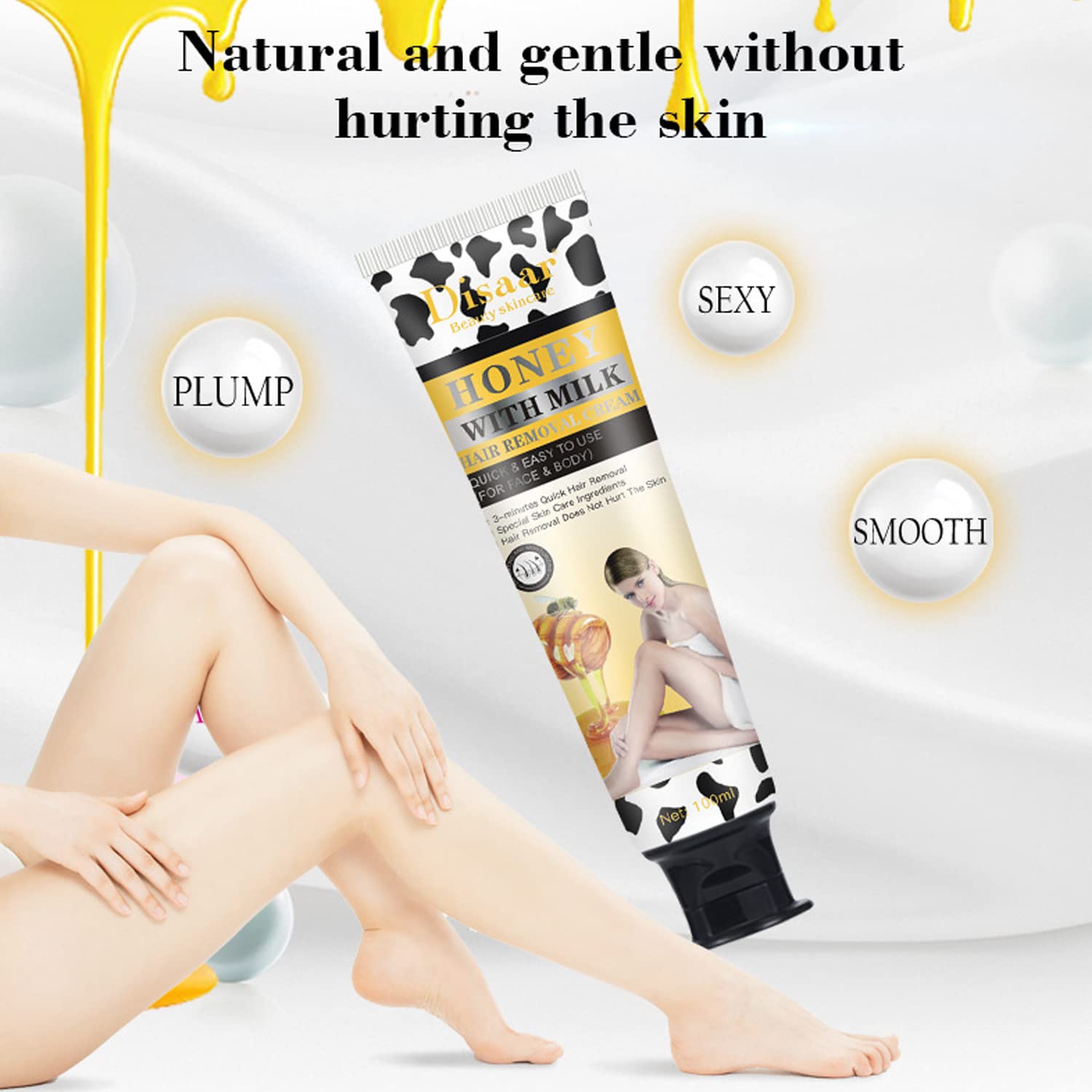 Hair Removal Cream 24k Gold Essence Collagen Argan Oil 3 Minutes Quick & Easy To Use Face Body Legs Depilating Moisturizing 100ml/3.38fl.oz (Honey With Milk)