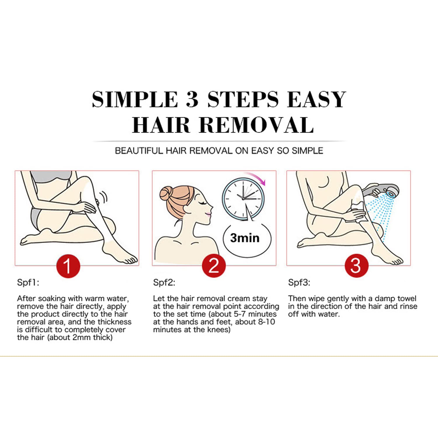 Adopting healthy ingredient, without side effect, safe to use. Gently and effectively remove body hair and nourish skin. Help skin complement moisture and make it silky smooth.