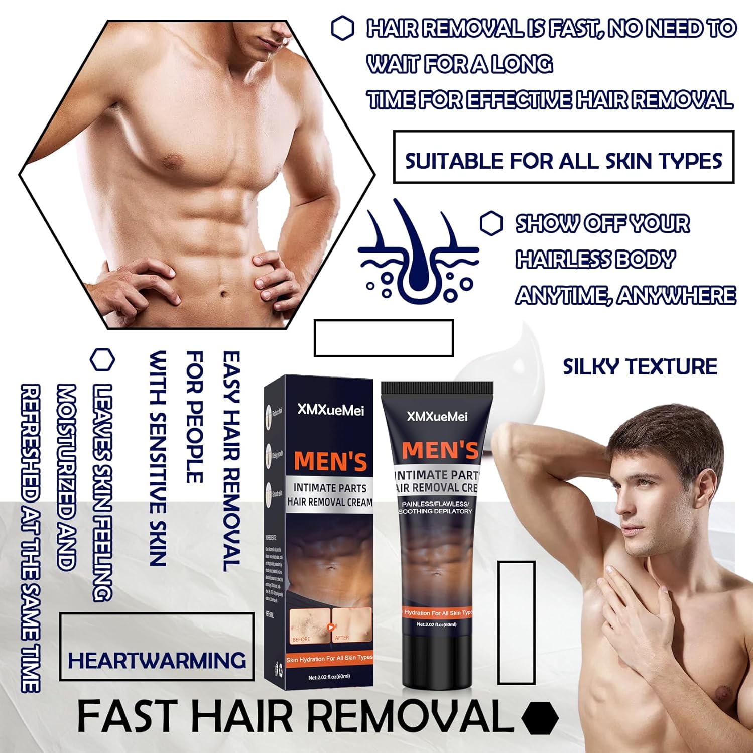 Hair Removal Cream for Men,Painless & Flawless Men’s Depilatory Cream,Fast and Effective Hair Remover Cream for Underarm,Legs,Chest,Back & Arms,All Skin