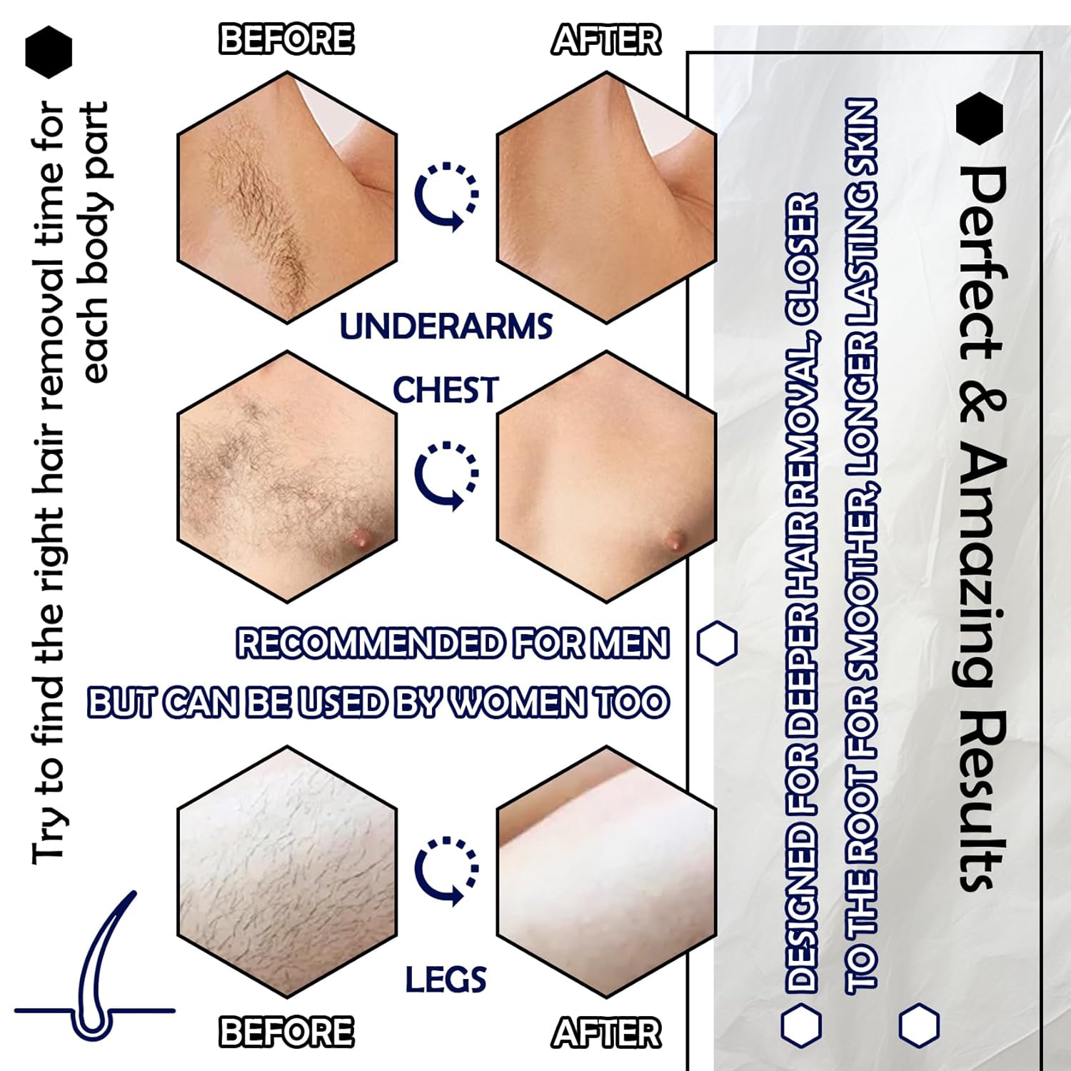 🎁【Suitable for Multiple Areas】Men’s depilatory cream can be used on underarms, legs, chest, back and arms, a wide range of use.